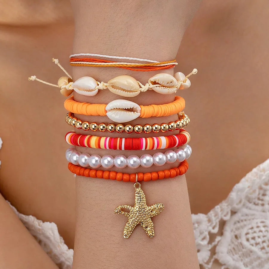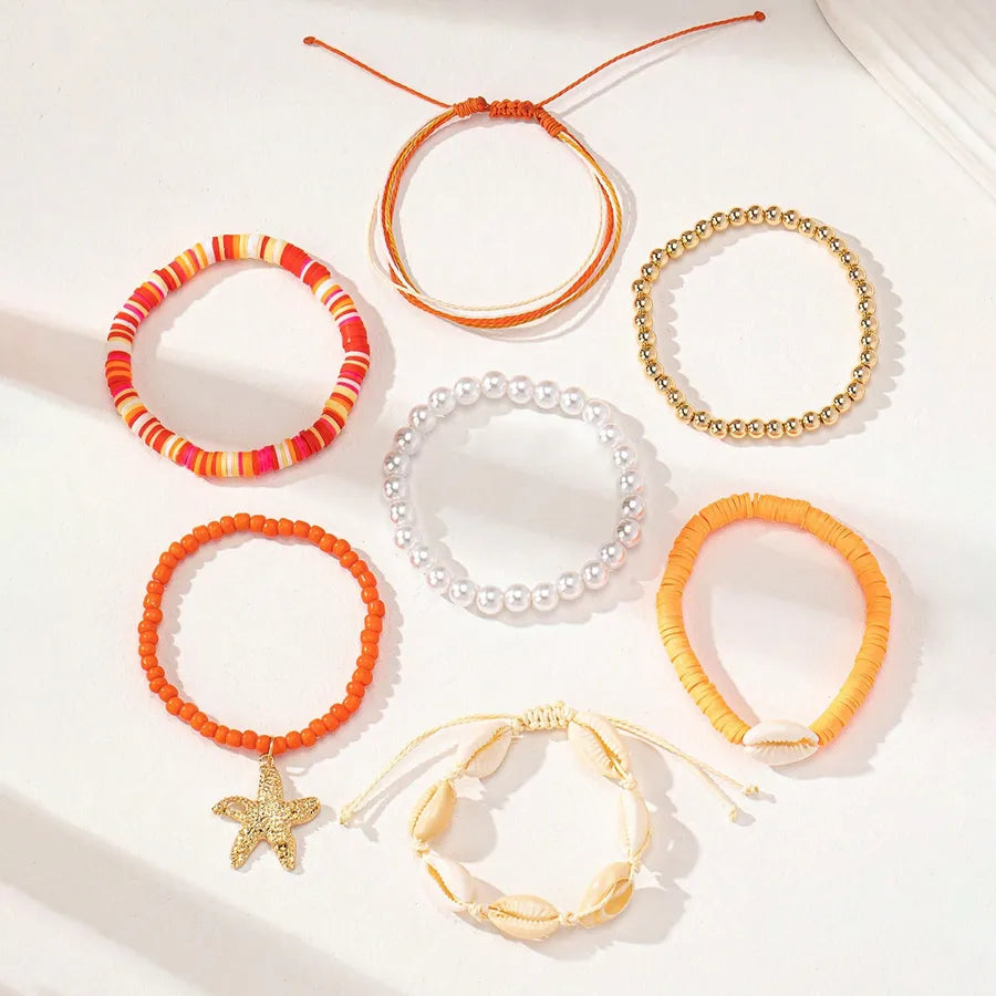 Qingdao Daiwei Jewelry E-Commerce Supply 7 Pieces of Bohemian Beach Shell Starfish Beaded Bracelet Set - A9582