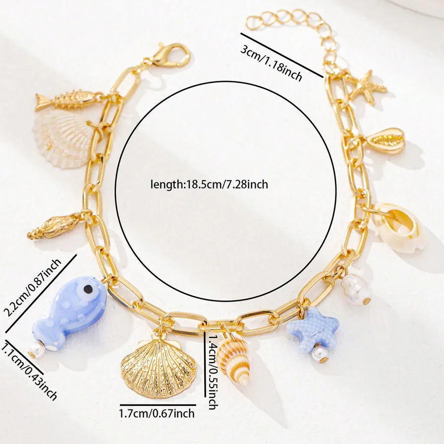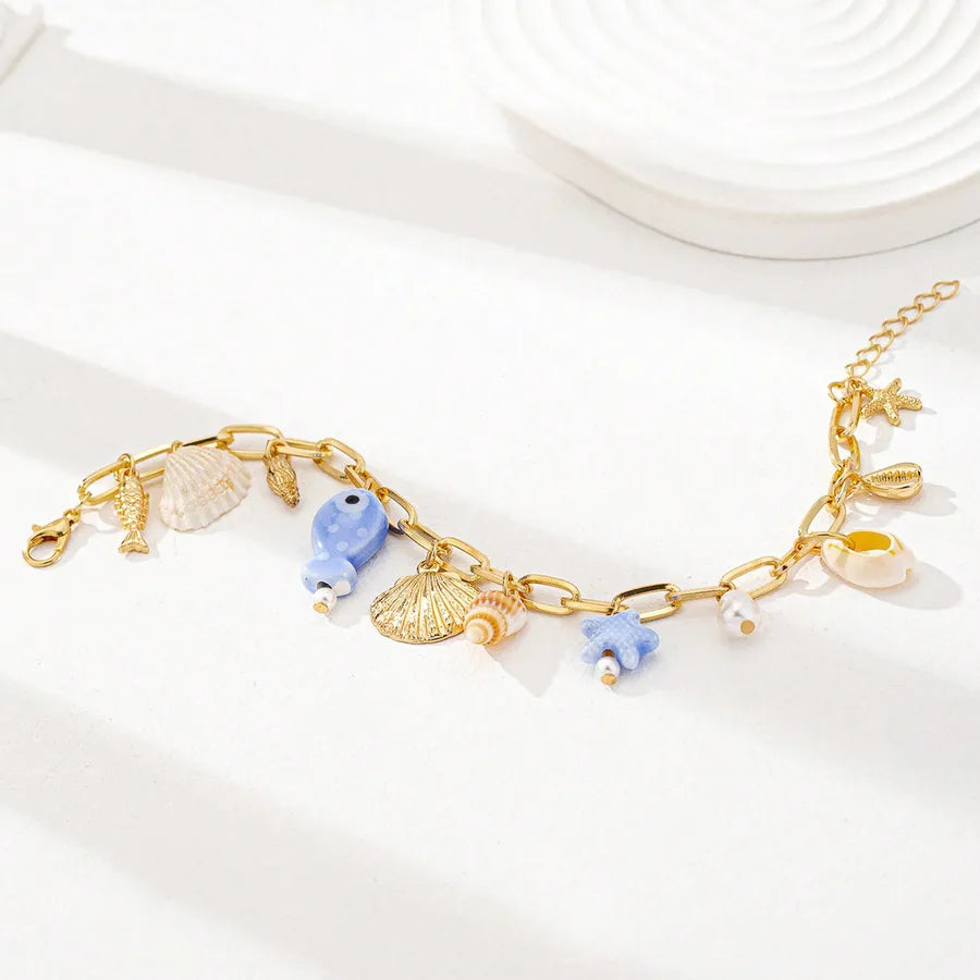 Qingdao DAVEY Ornament E-Commerce Supply 1 Ceramic Fish Sardine Beach Shell Multi-Pendant Bracelet - A10201-2