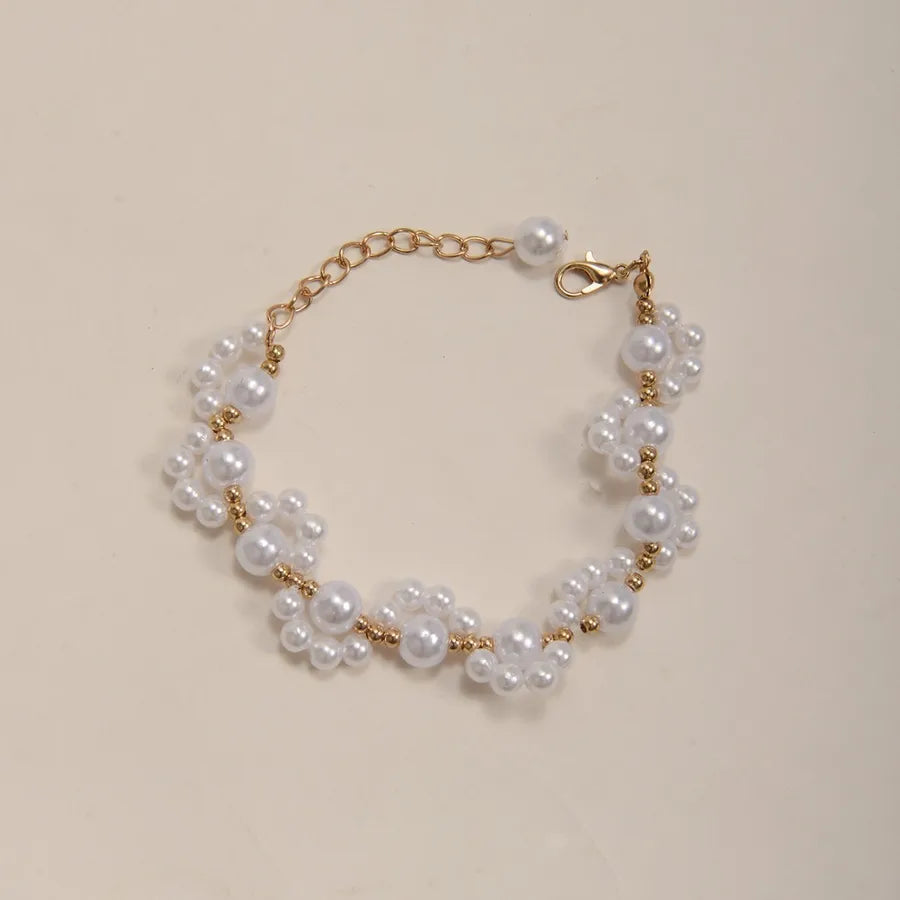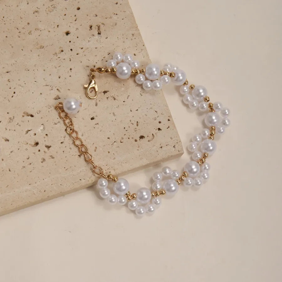Retro Pearl Pull-String Beaded Bracelet For Women Simple Design Versatile Zinc Alloy Geometric Pattern Jewelry Accessory
