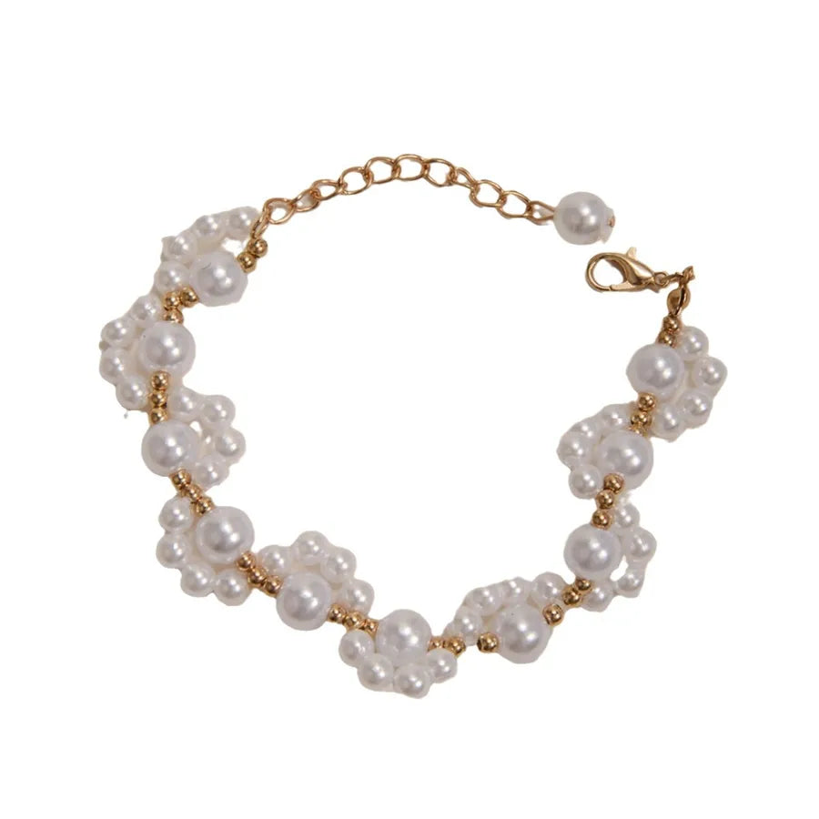 Retro Pearl Pull-String Beaded Bracelet For Women Simple Design Versatile Zinc Alloy Geometric Pattern Jewelry Accessory - Gold