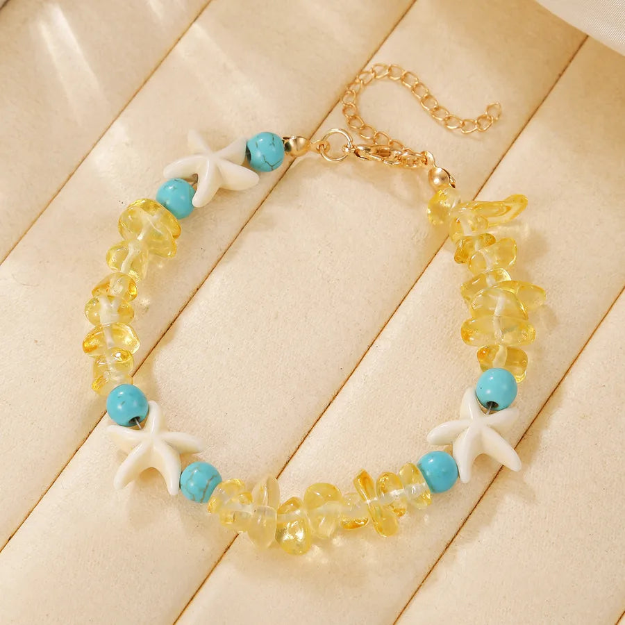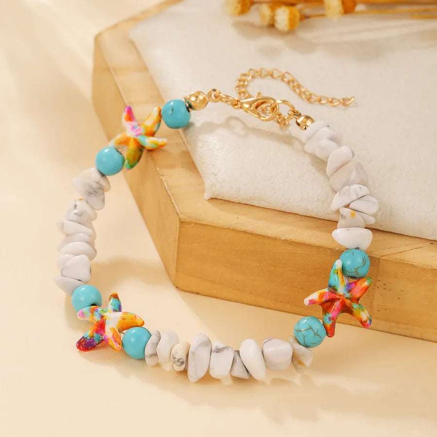 Summer Beach Starfish Turquoise Bracelet Irregular Natural Crystal String Beads Bracelet Female Bohemian Bracelet - Green