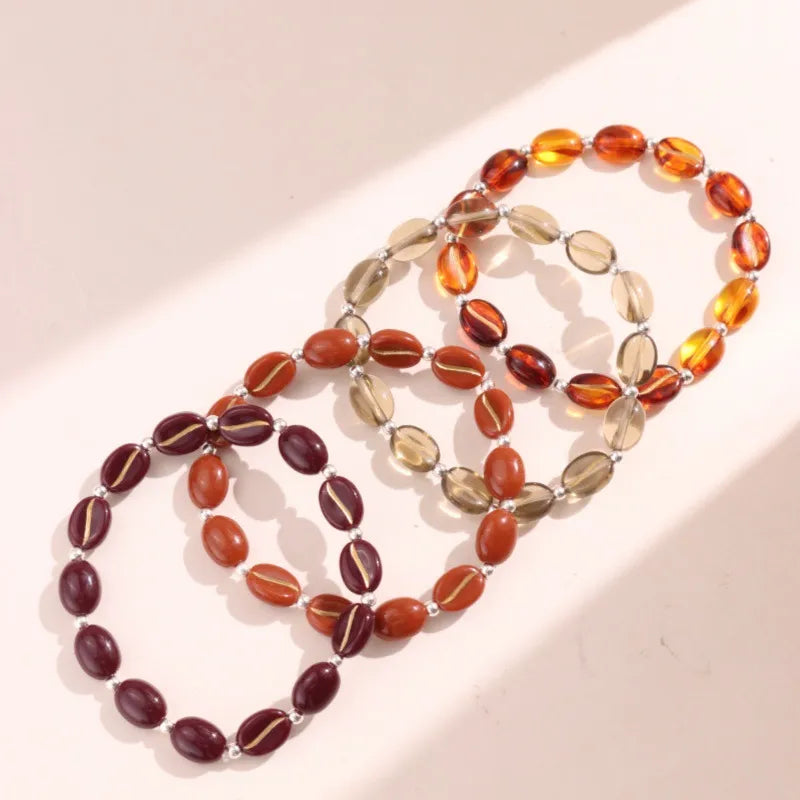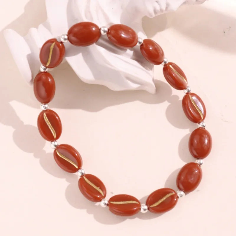 Sweet Cool Coffee Bean String Bead Bracelet Women's Unique Design Sensation Retro High Fashion Versatile Hand Jewelry Trend