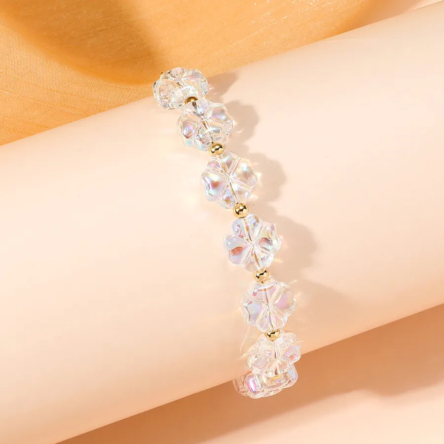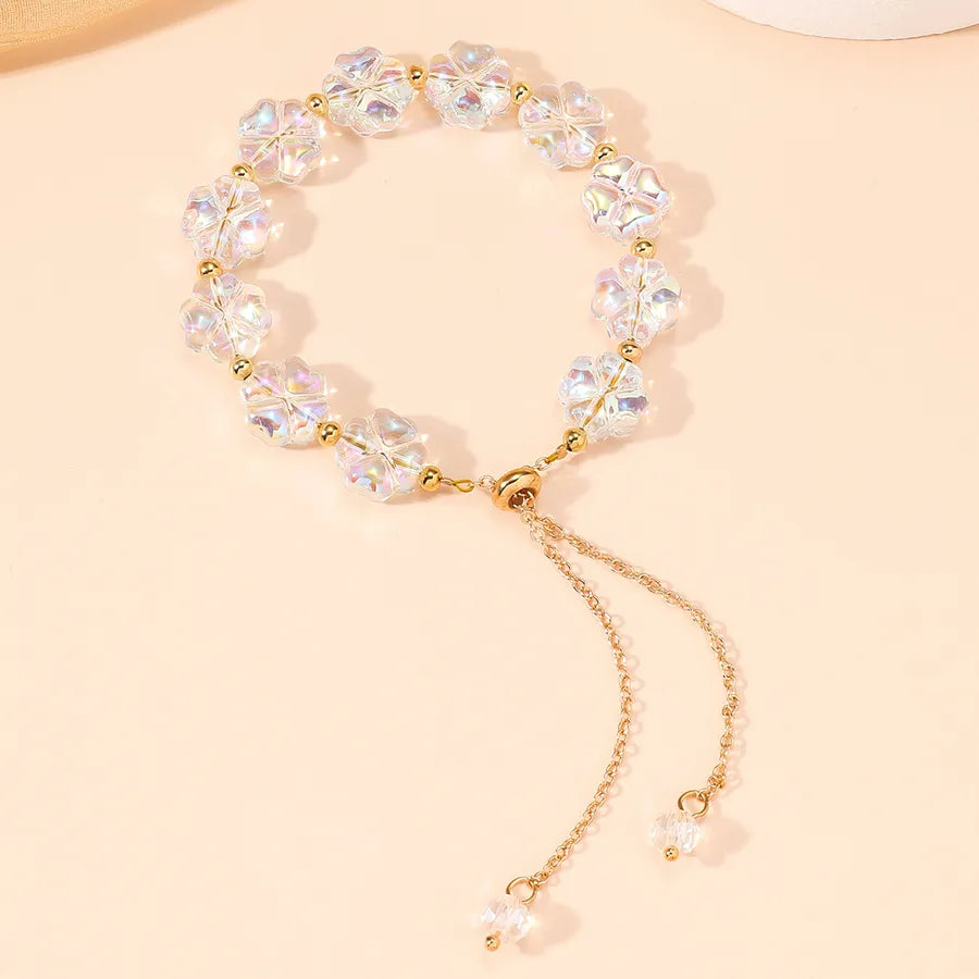 Transparent AB Color Crystal Beads Beaded Bracelet Women's Fashion Ins Pull-out Adjustable Buckle Women's Jewelry - Four-Leaf Clover Crystal Beads