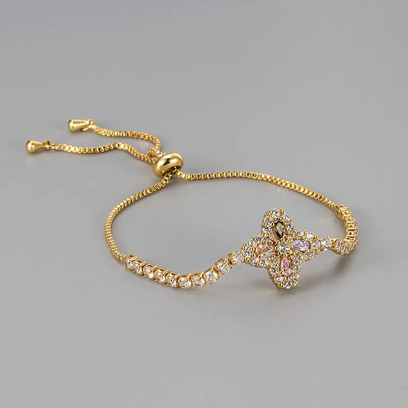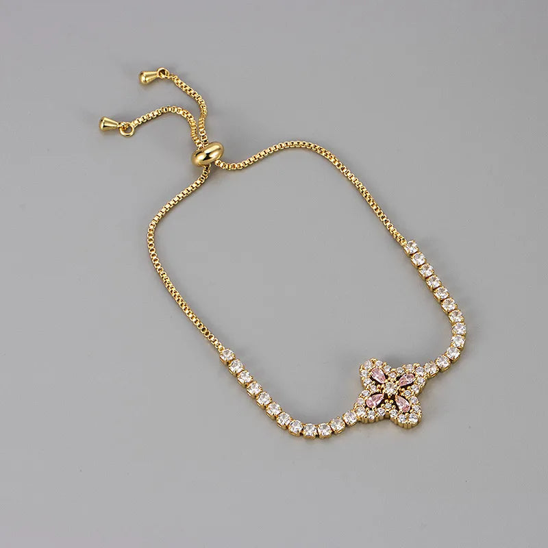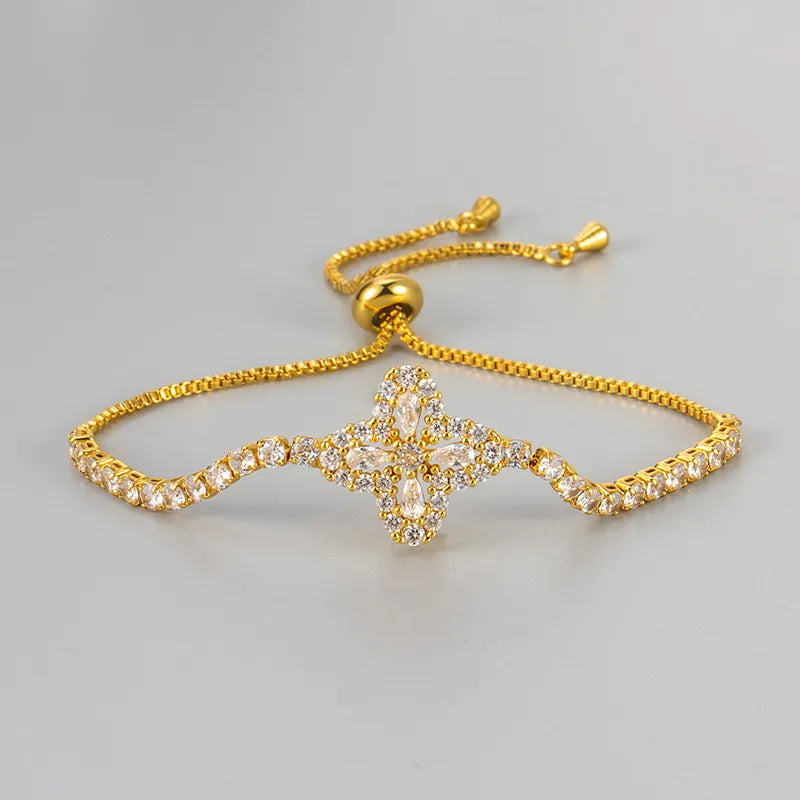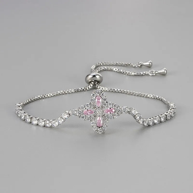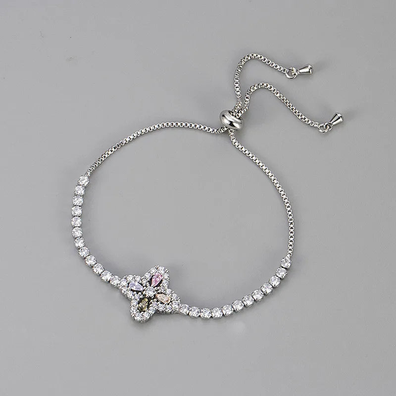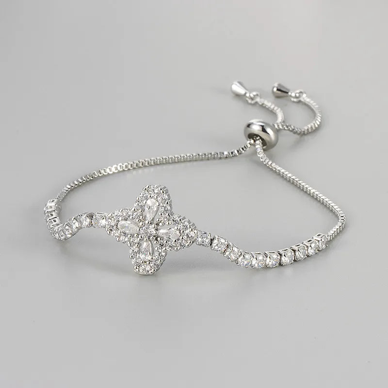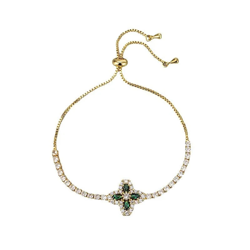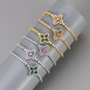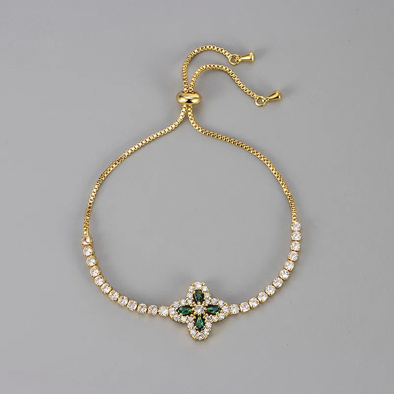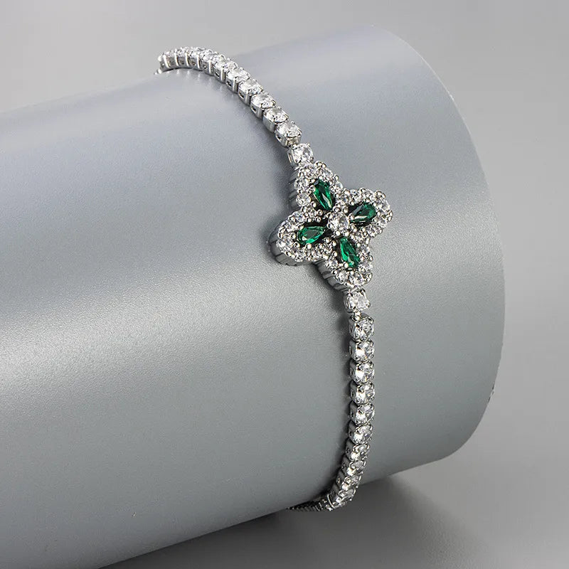 Zircon Diamond Flower Bracelet Fashion Commuting Light Luxury Adjustable Bracelet All-match High-end Niche Bracelet Full Diamond - Diamond flower bracelet/white gold green diamond / Copper