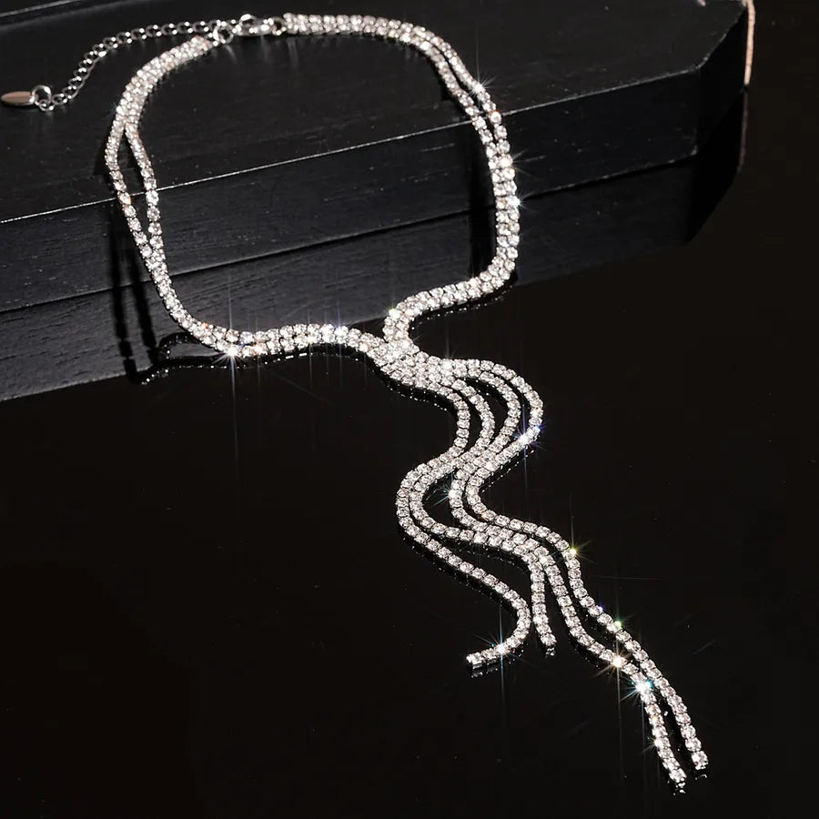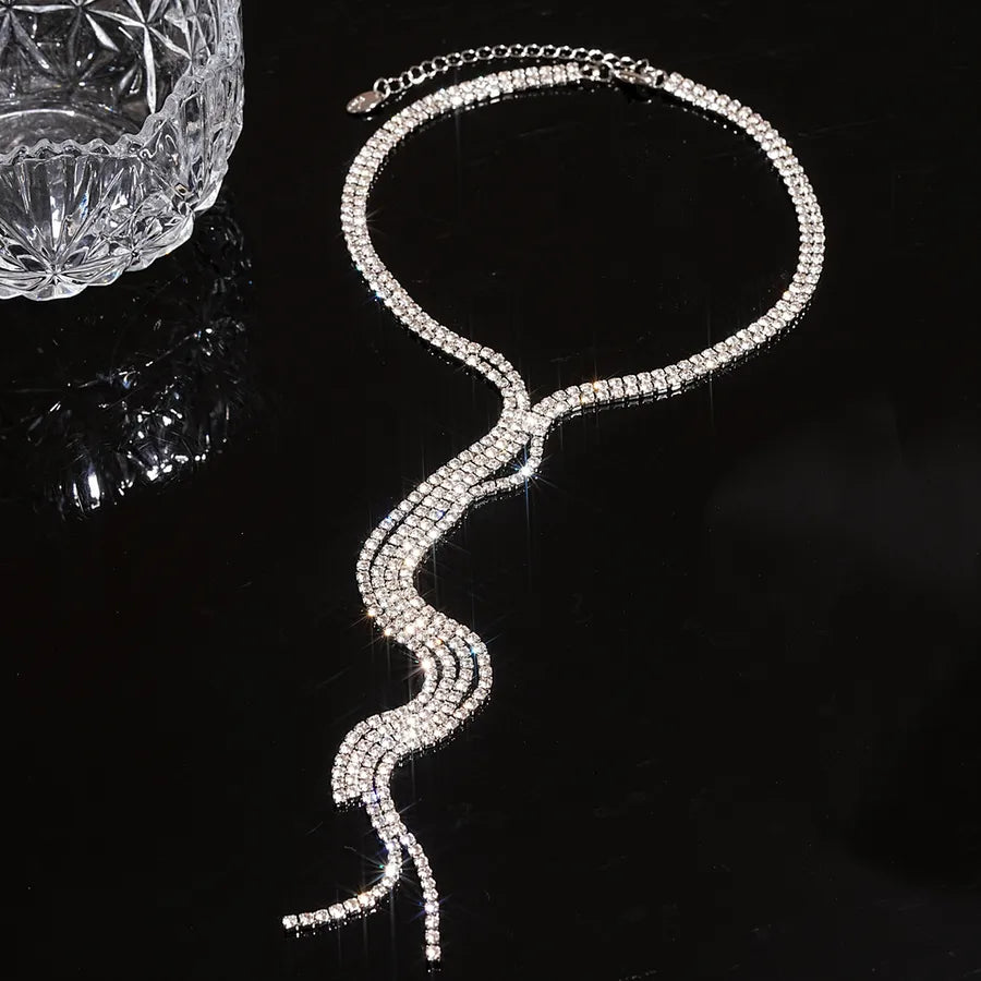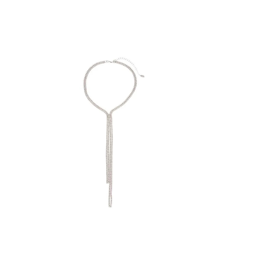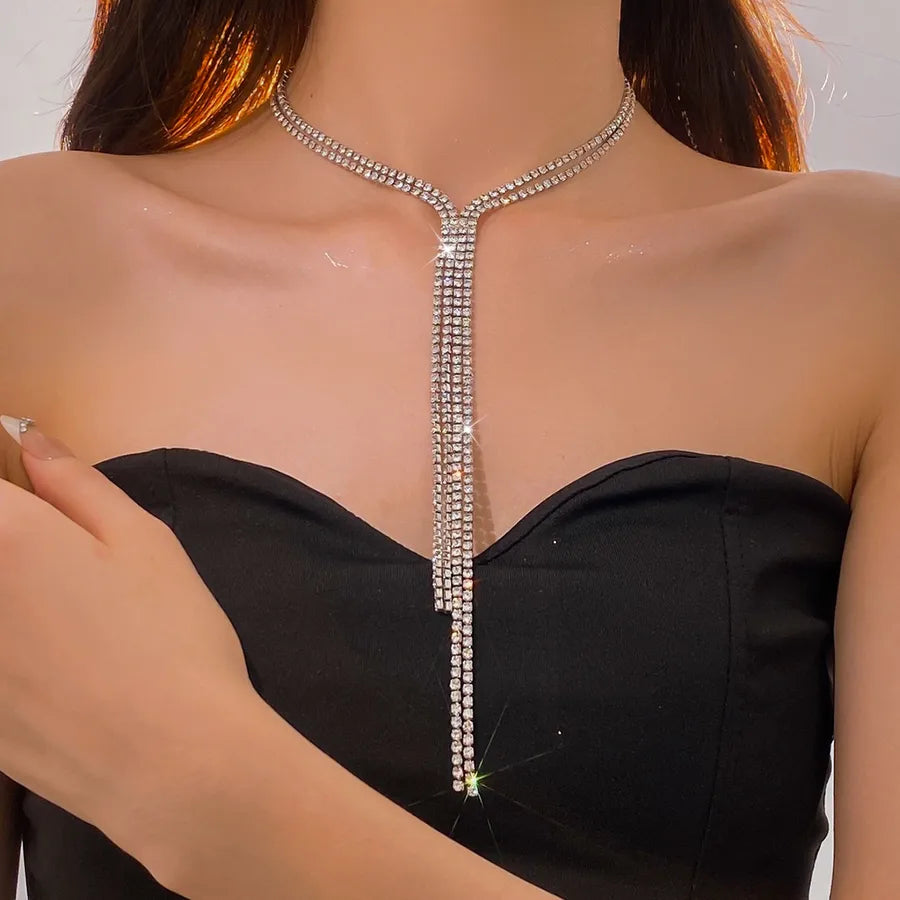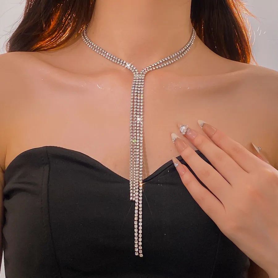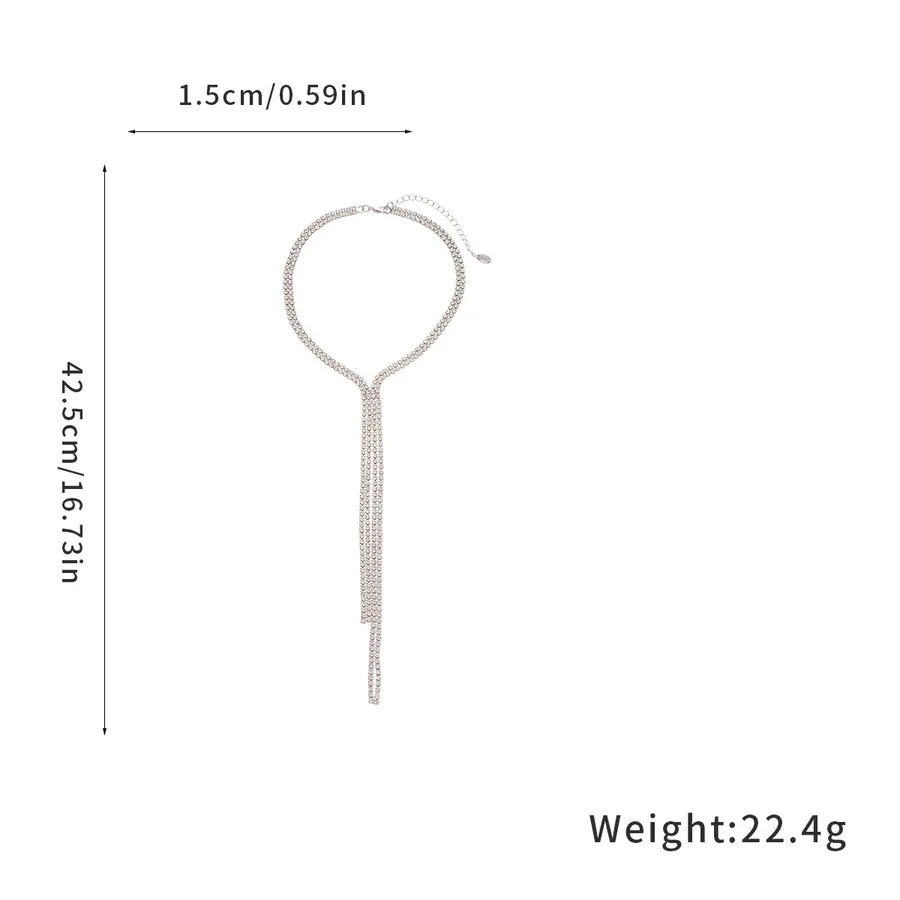 Double Layer Diamond Embellished Tassel Necklace Fashionable Personality European American Style Lightweight Luxury Clavicle Chain Accessory - Necklace-Gold