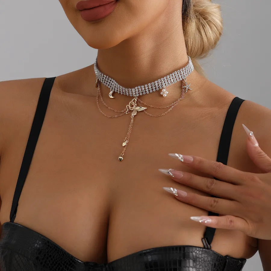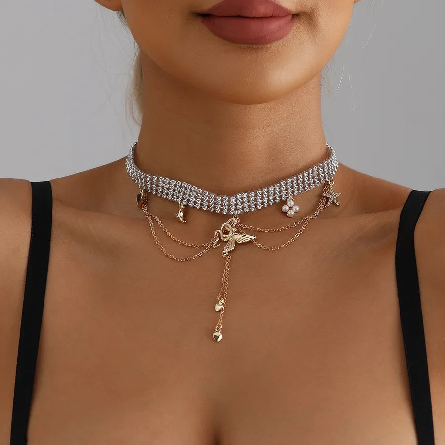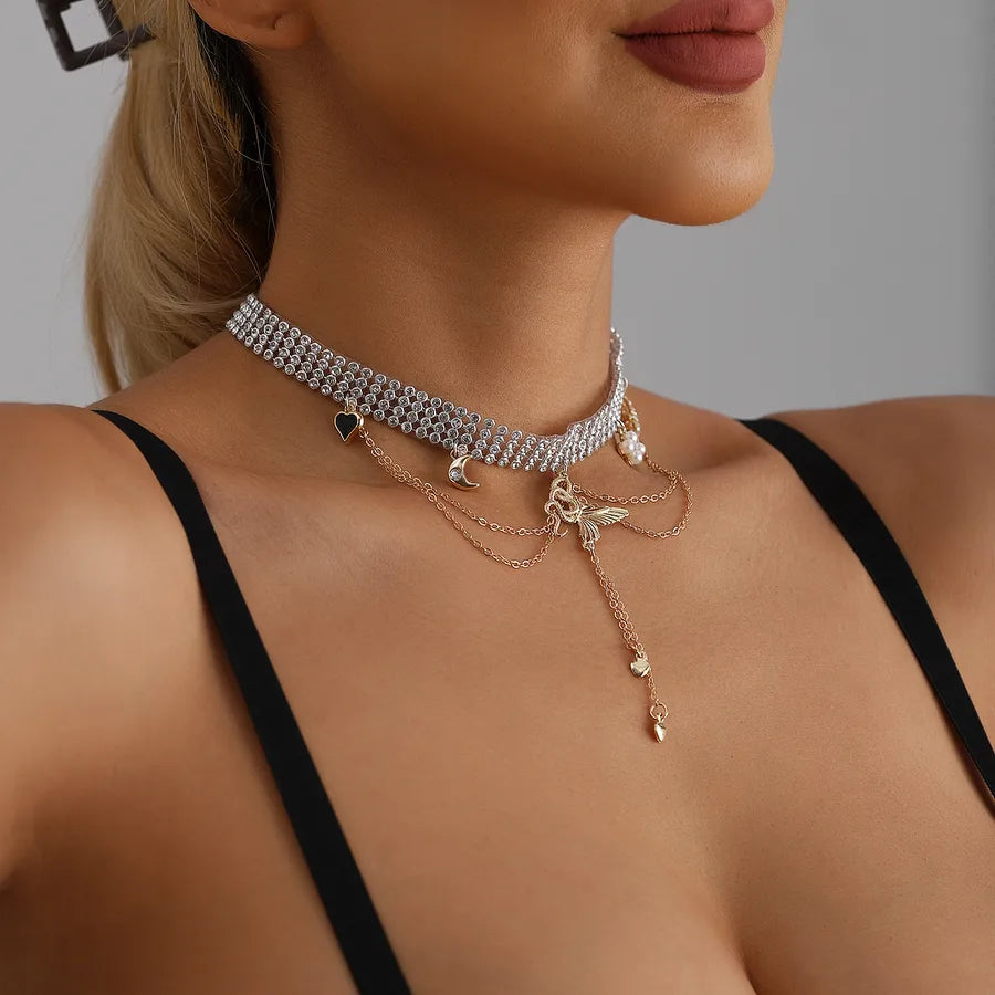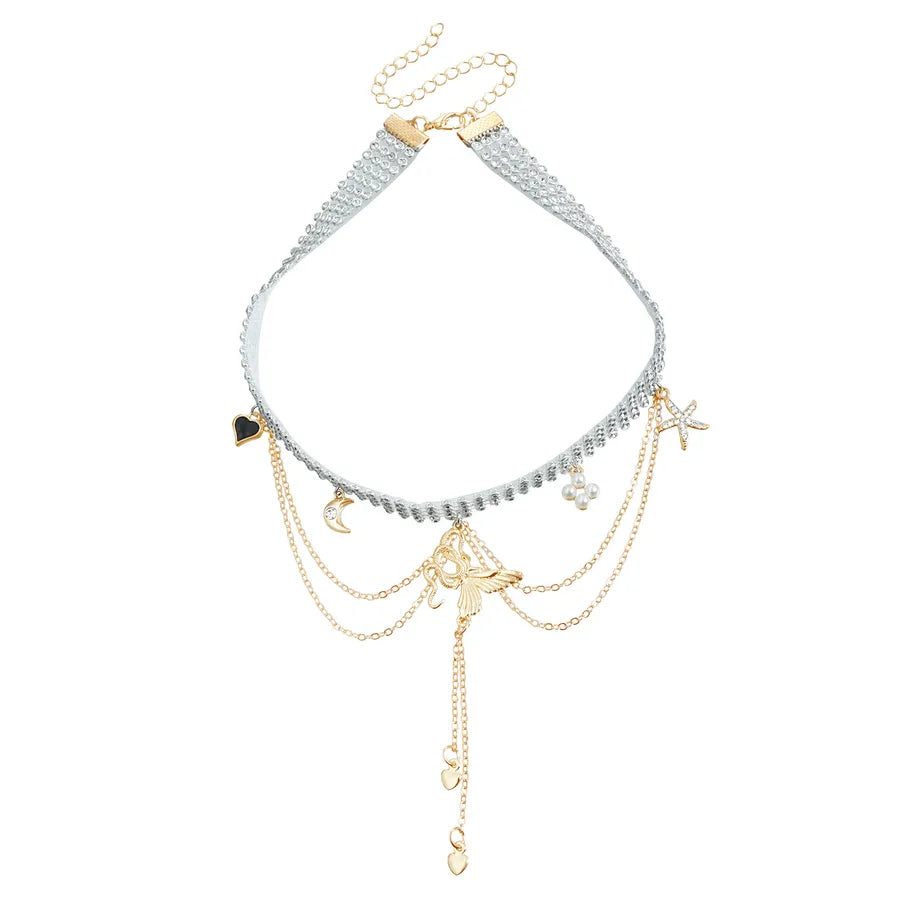 Elegant Butterfly Pendant Clavicle Chain Necklace For Women Fashionable Mixed Style Attention Grabbing Personality Jewelry