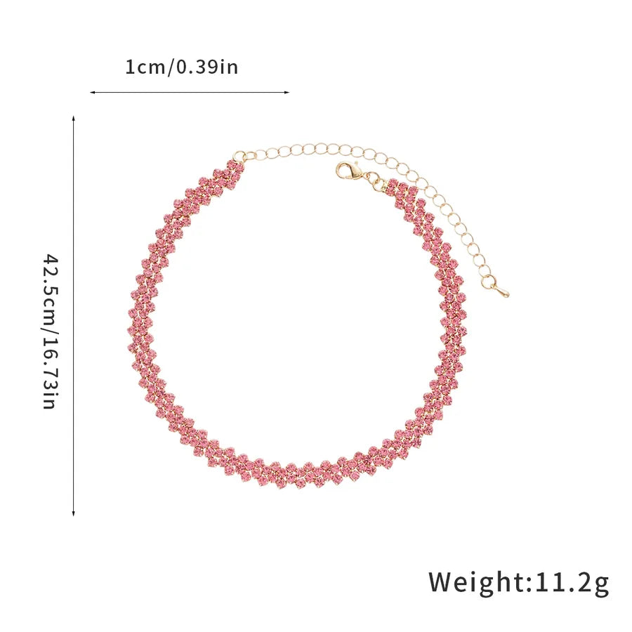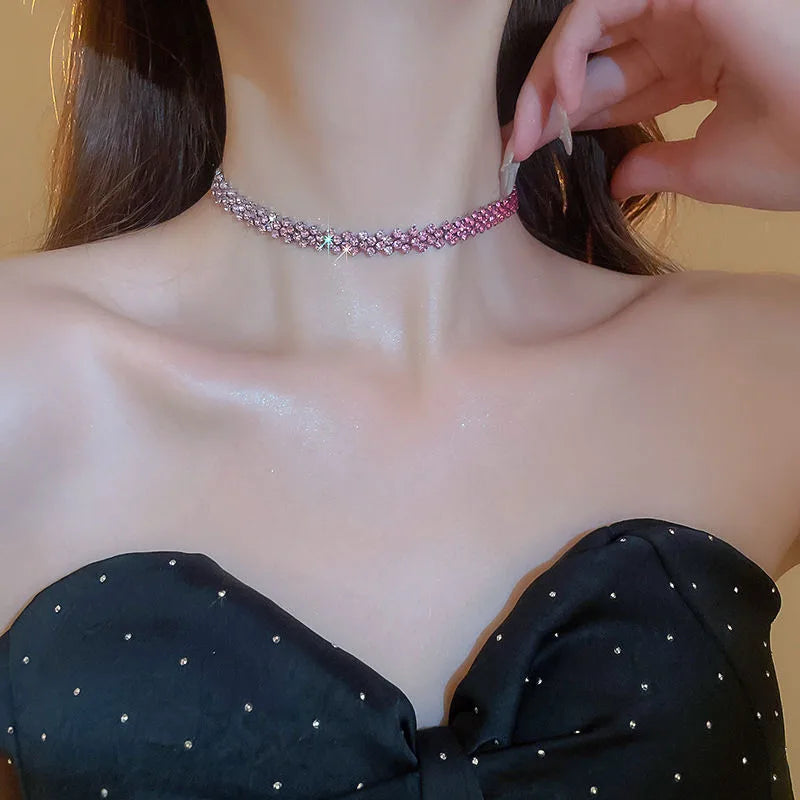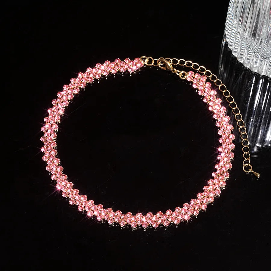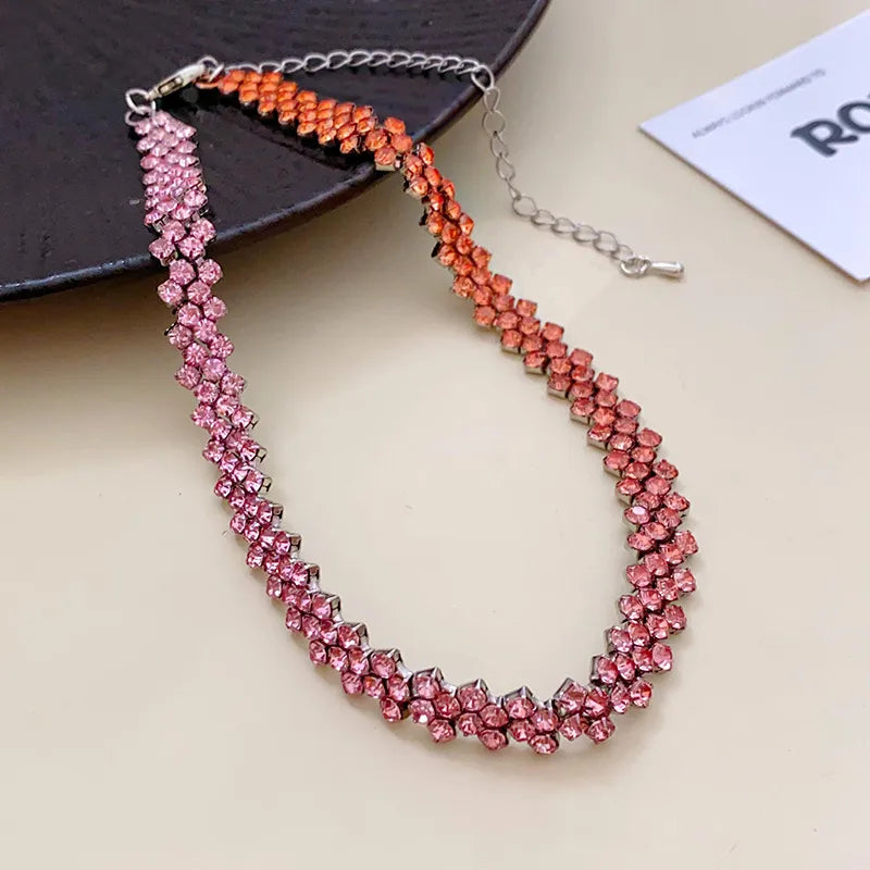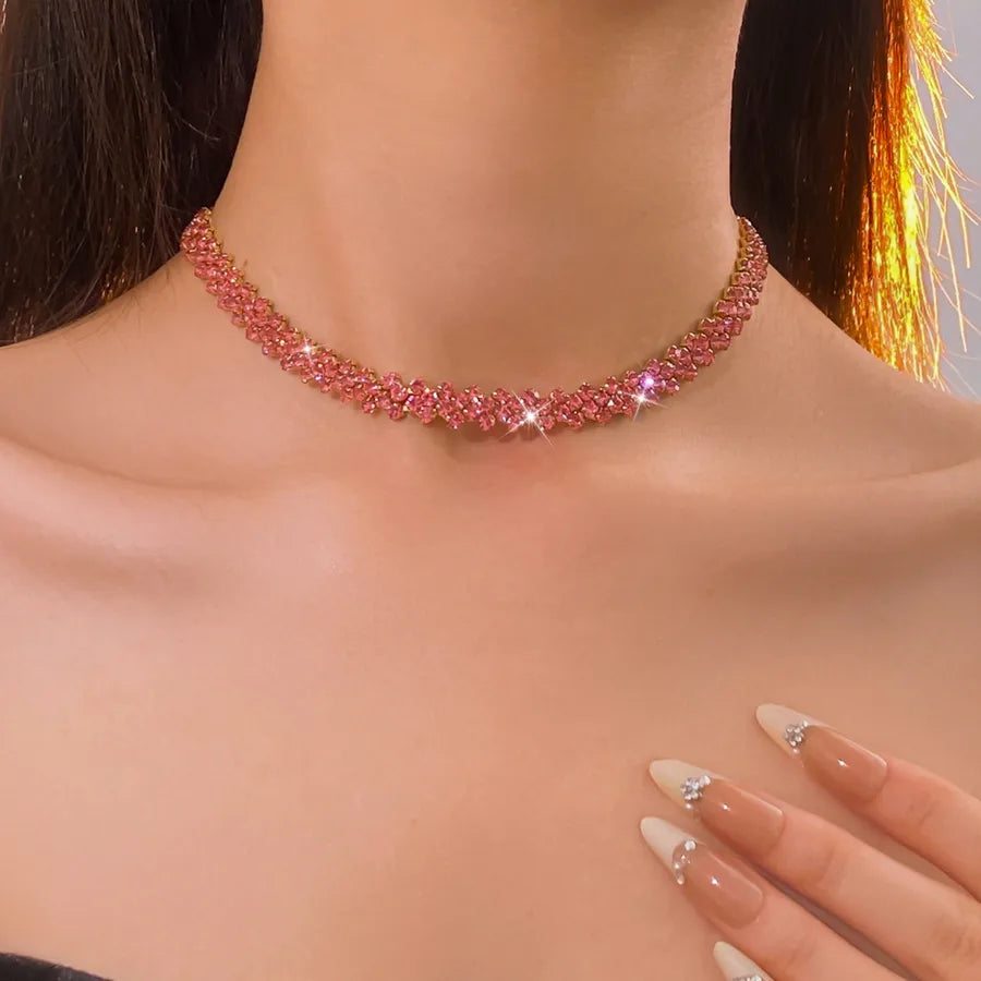 Flashy Diamond Embedded Rhombus Necklace Versatile Gentle Fashionable Commuting Jewelry Lightweight Luxury Sensation Clavicle Chain - Necklace-gold-rose Red