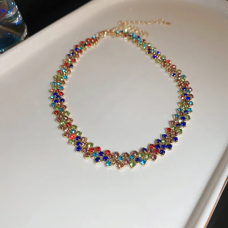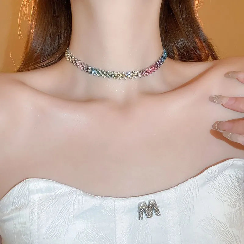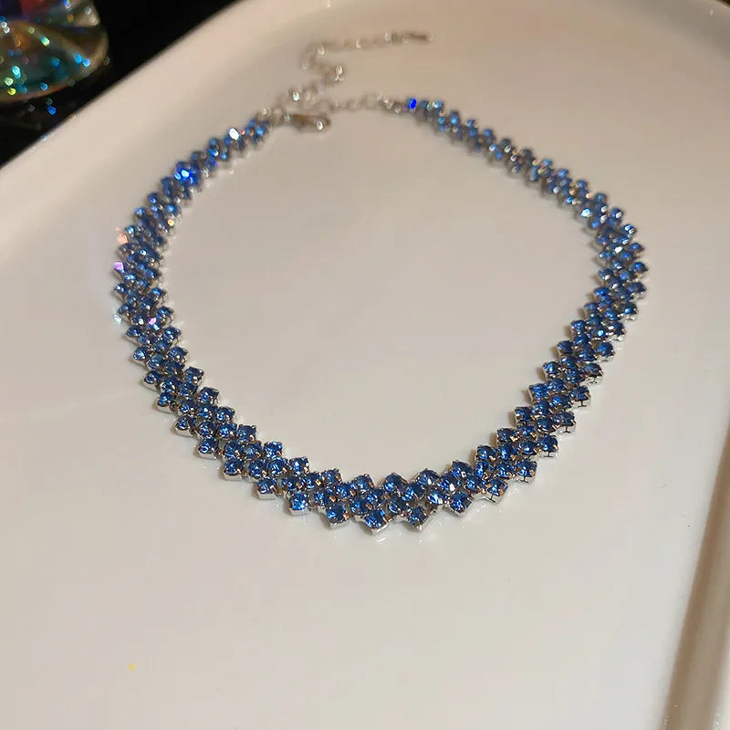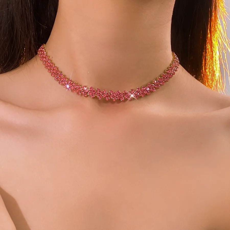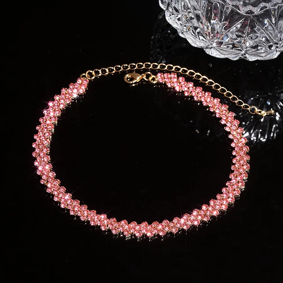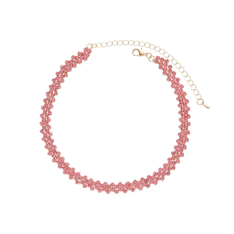 Flashy Diamond Embedded Rhombus Necklace Versatile Gentle Fashionable Commuting Jewelry Lightweight Luxury Sensation Clavicle Chain - Necklace-gold-rose Red
