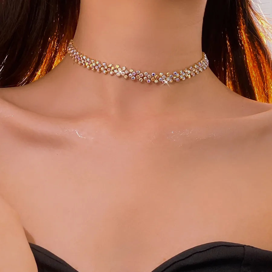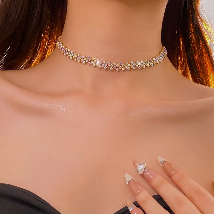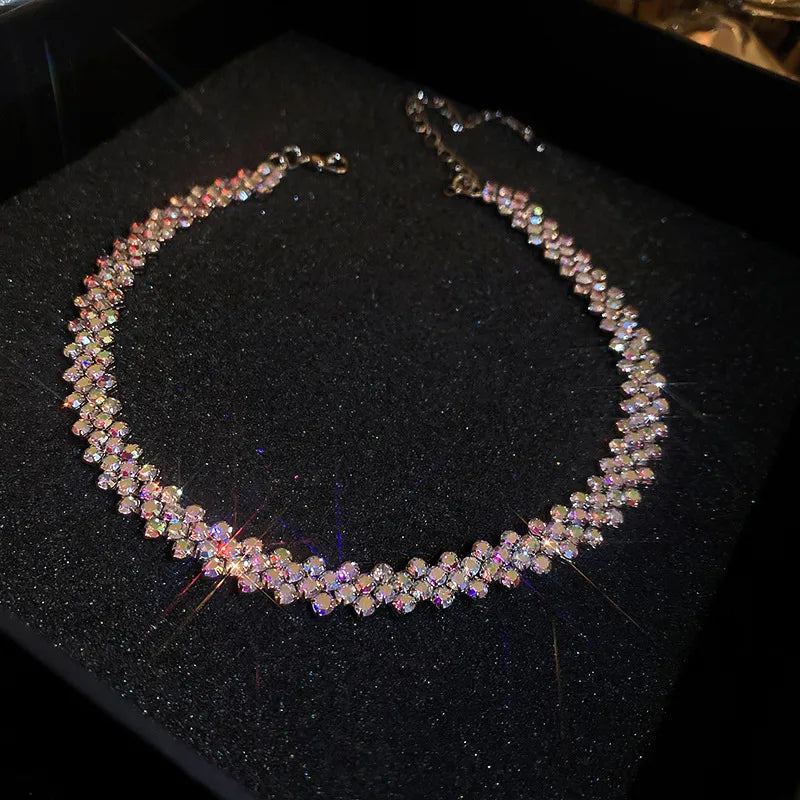Luxurious Bling Diamond Embedded Spliced Necklace Versatile Elegant Design Sensation Minimalist Fashionable All-match Jewelry