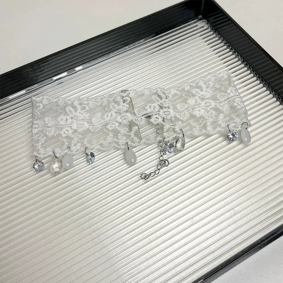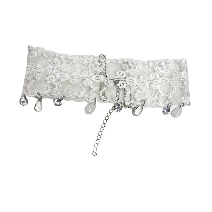 Sweet White Lace Wide Neck Lace Necklace Women's Versatile Drop Tassel Simple Elegance Alloy Copper Jewelry Accessory - White Lace Wide Neck Strap