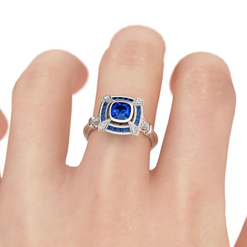 fashion geometric crystal rhinestone inlaid alloy ring ornament - Silver / 10
