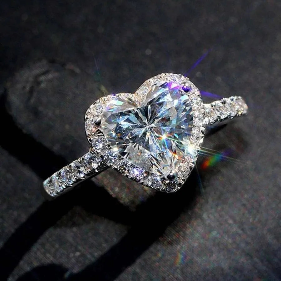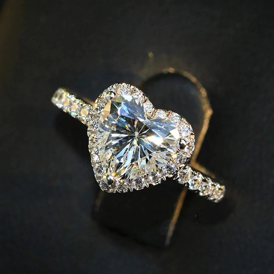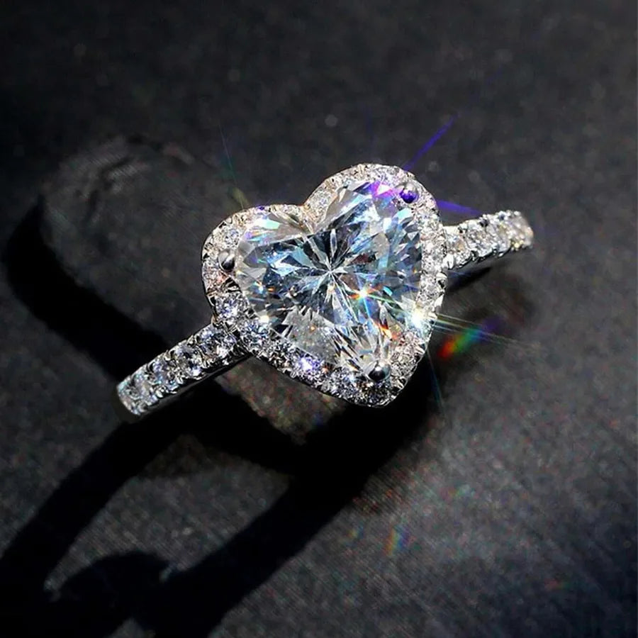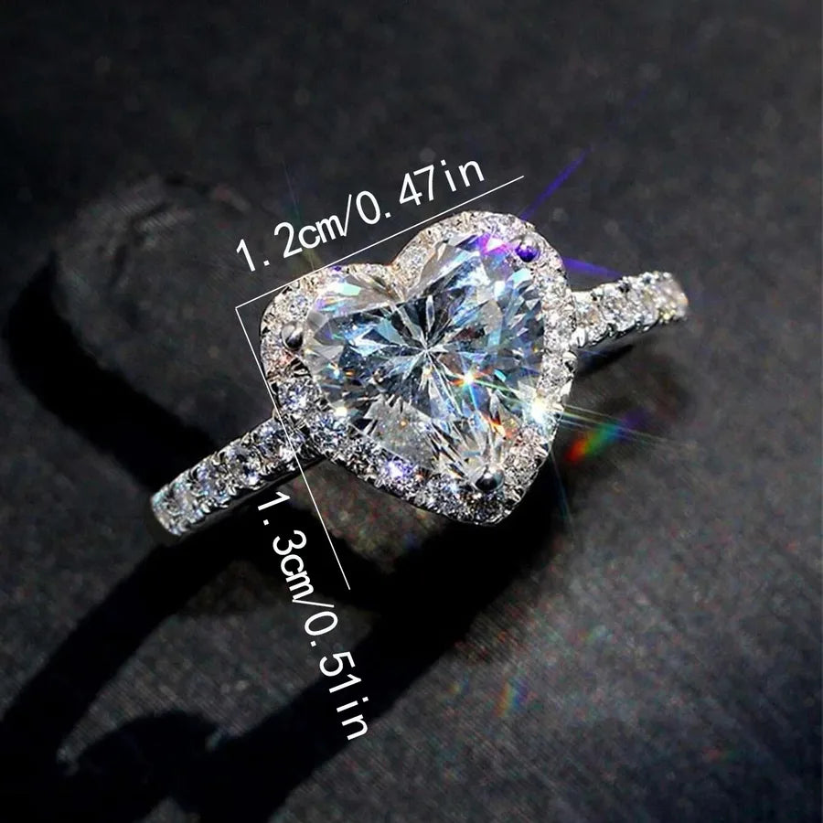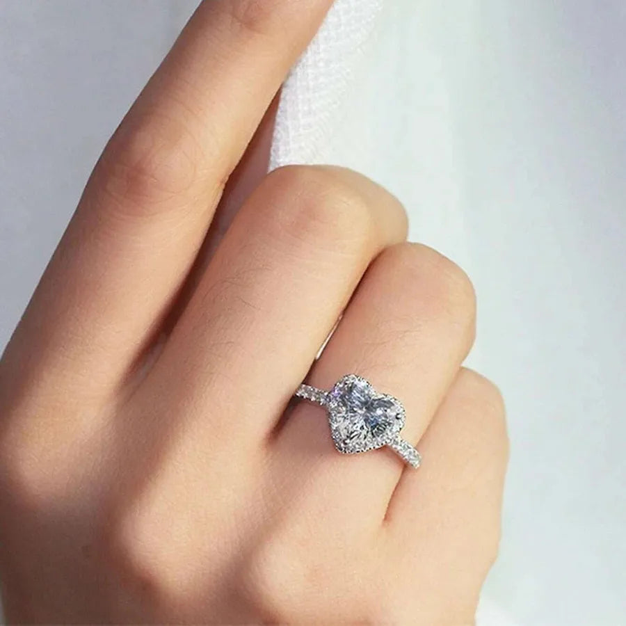 lady heart shape alloy plating inlay zircon silver plated women's rings