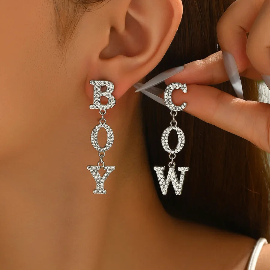 Elegant Diamond Embedded Alphabet Letter Women's Earrings Style Lightweight Luxury Geometric Ear Jewelry - SF301