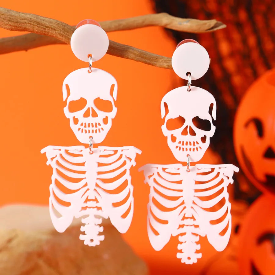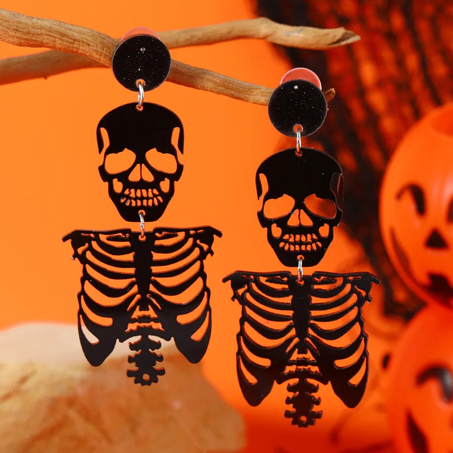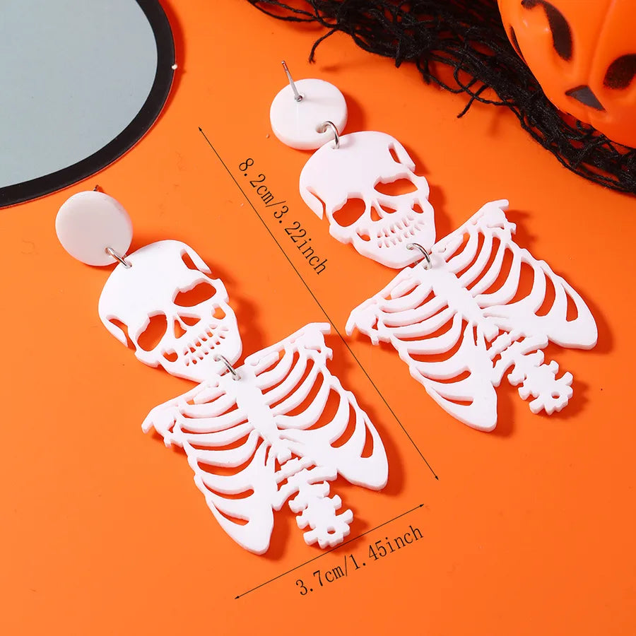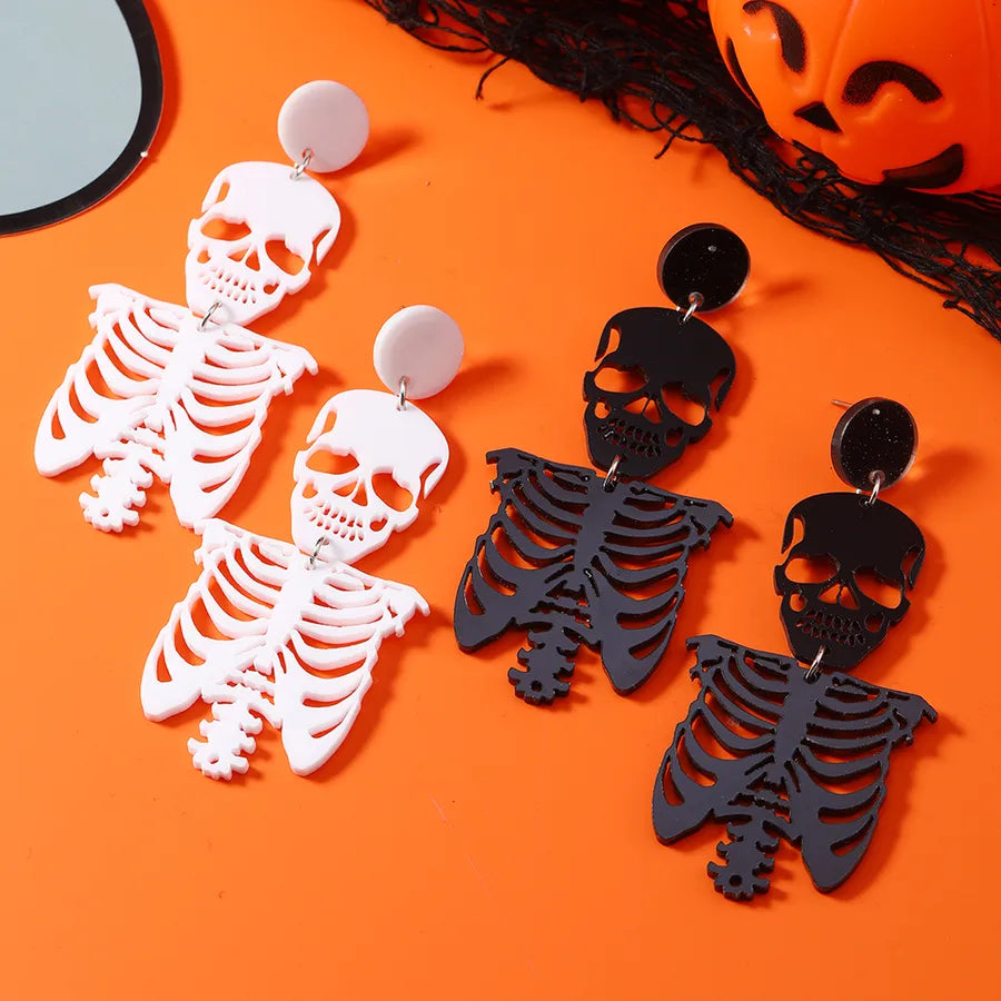 1 Pair Halloween Funny Classic Style Skull Hollow Out Arylic Drop Earrings - Black White K (Weh5334)