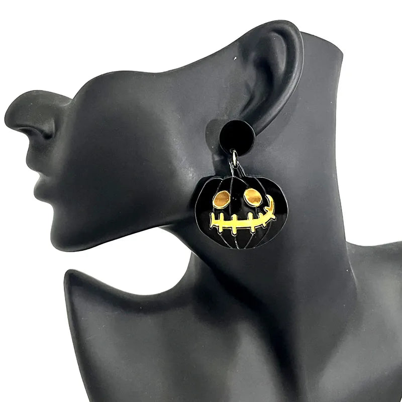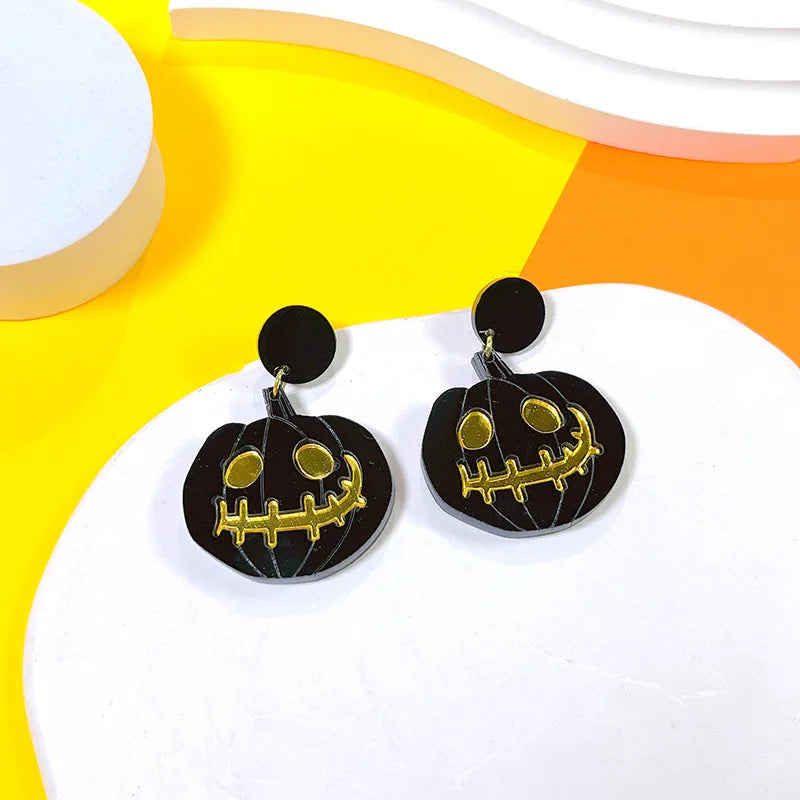 1 pair hip-hop streetwear halloween pattern arylic drop earrings - Pumpkin