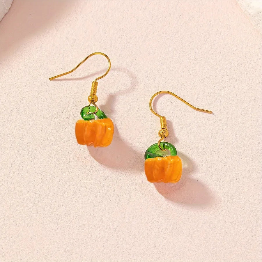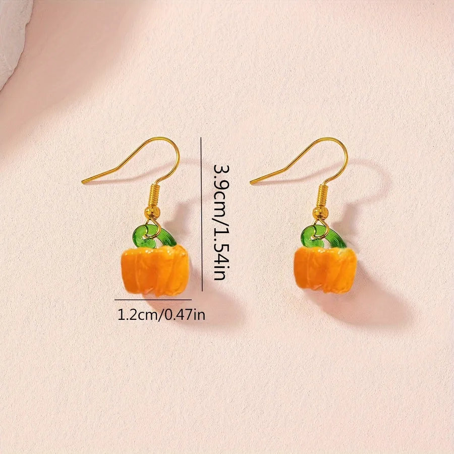 Creative Halloween Pumpkin Earrings Sweet Cool Personalized Gift For Ladies Fashionable Street Style Holiday Jewelry Accessories - Dark Orange / 1.2CM*3.9CM
