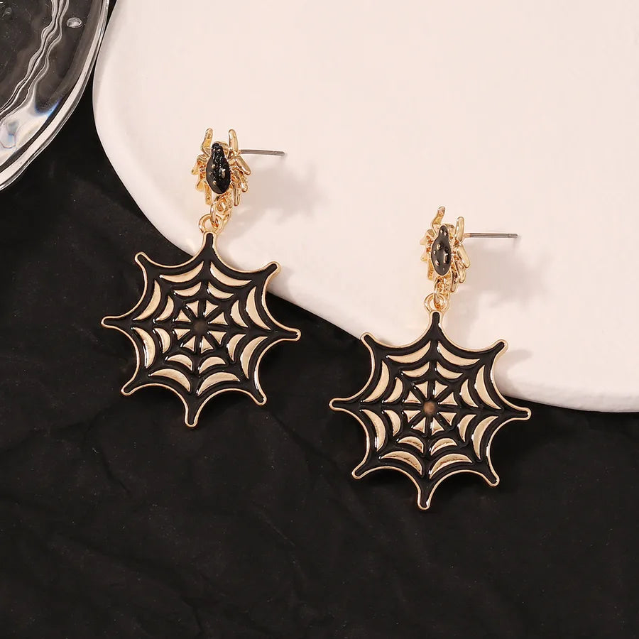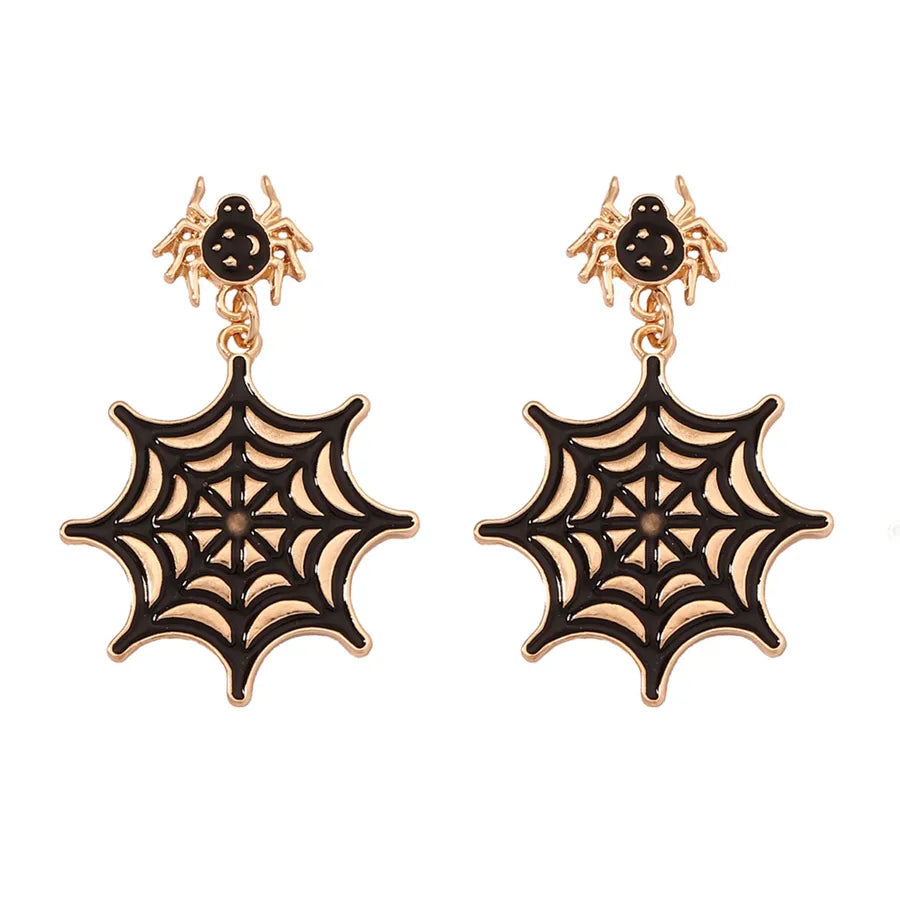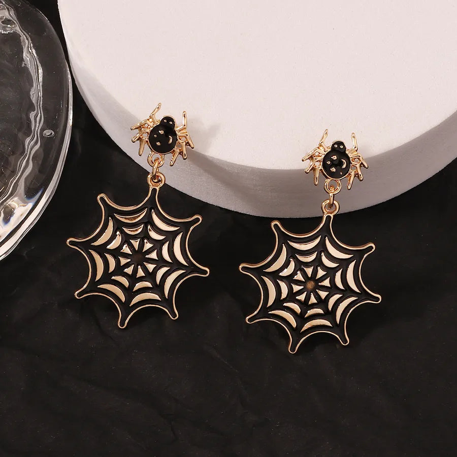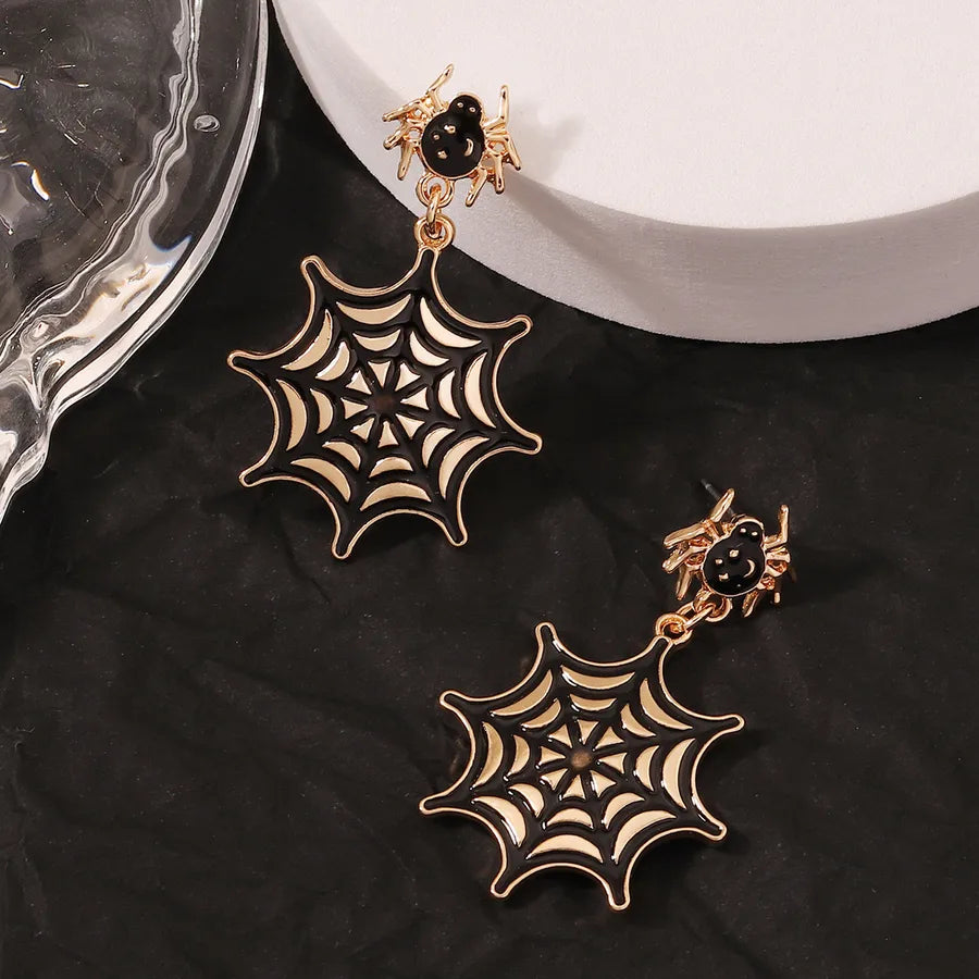Dark Spider Web Alloy Drip Oil Earrings Trendy Personality Retro Halloween Series Geometric Pattern Zinc Alloy Women's Jewelry - Black