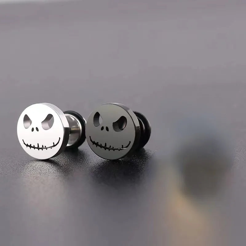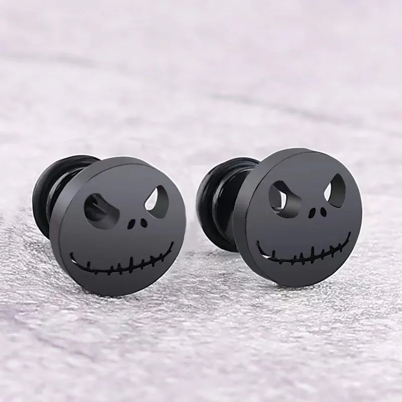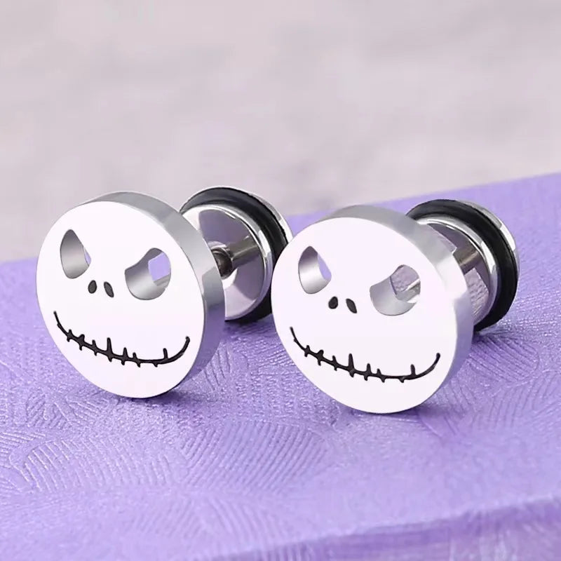 funny pumpkin stainless steel ear studs hollow out stainless steel earrings - Silver