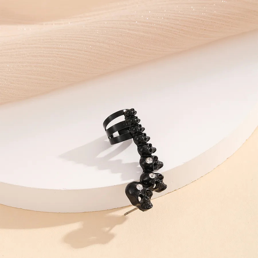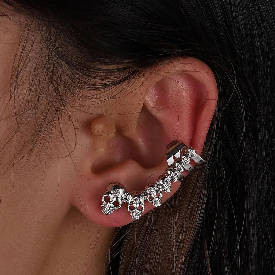 Individuality Exaggerated Punk Style Ear Cuff Skull Head Integrated Halloween Ear Bone Clip-On Earrings