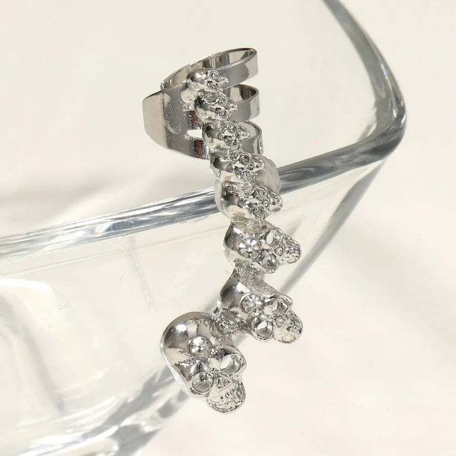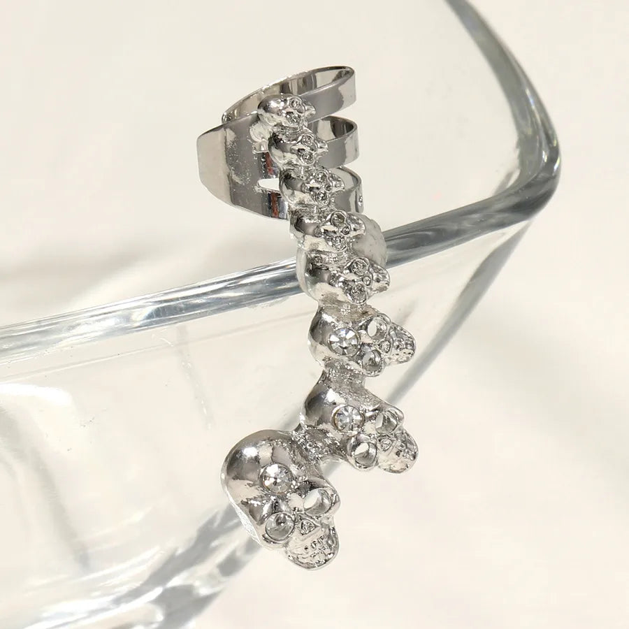 Individuality Exaggerated Punk Style Ear Cuff Skull Head Integrated Halloween Ear Bone Clip-On Earrings - Silver