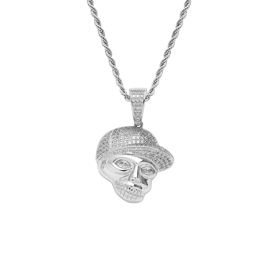 Copper Skull Pendant With Hat Halloween Themed Zircon Inlay Hip Hop Style Cartoon And Devil Design Clavicle Chain Pendant
