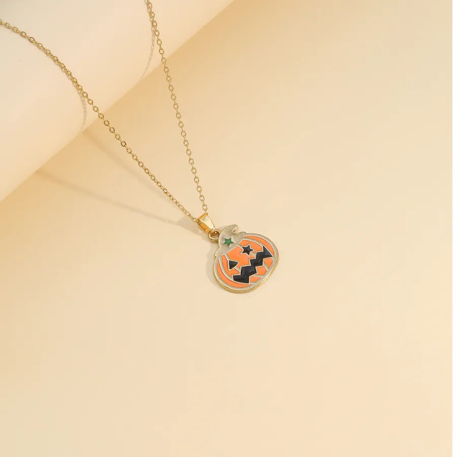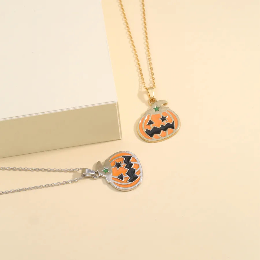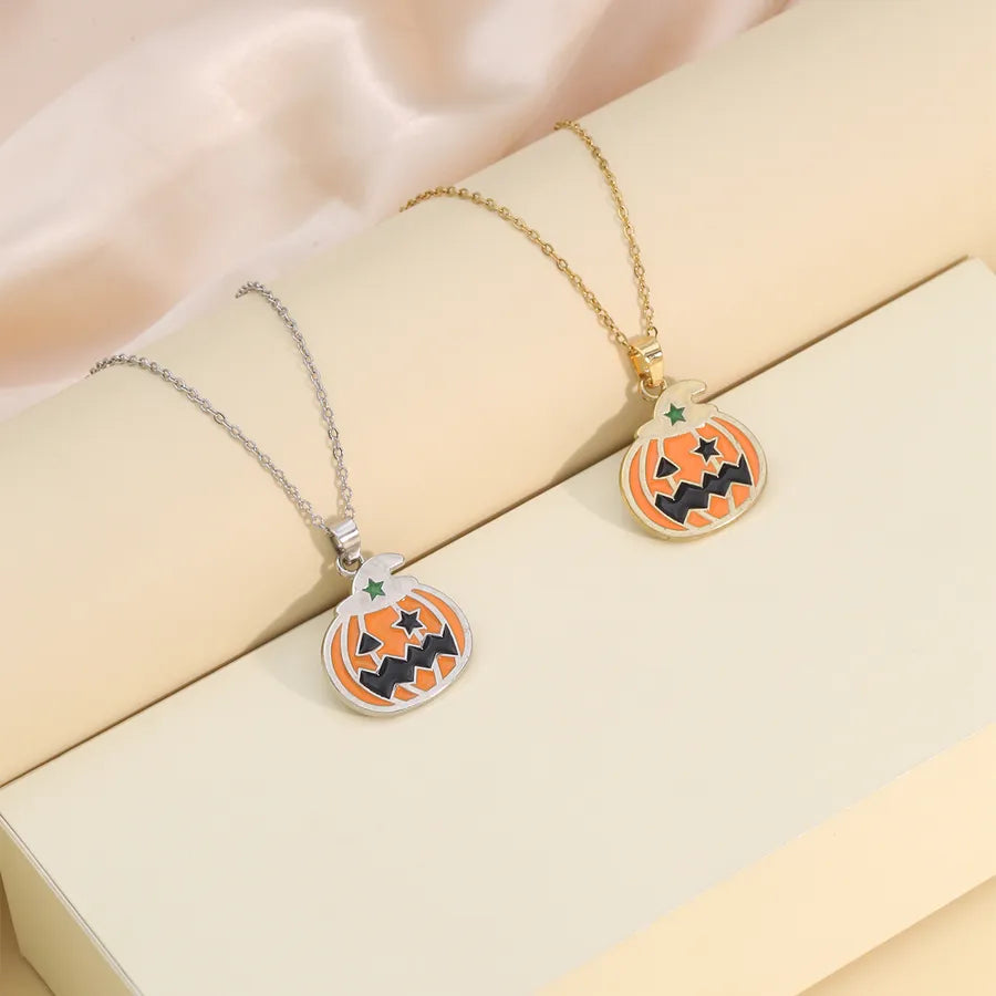 Cute Funny Simple Style Pumpkin 304 Stainless Steel Alloy Pendant Necklaces Halloween Wholesale - Golden One