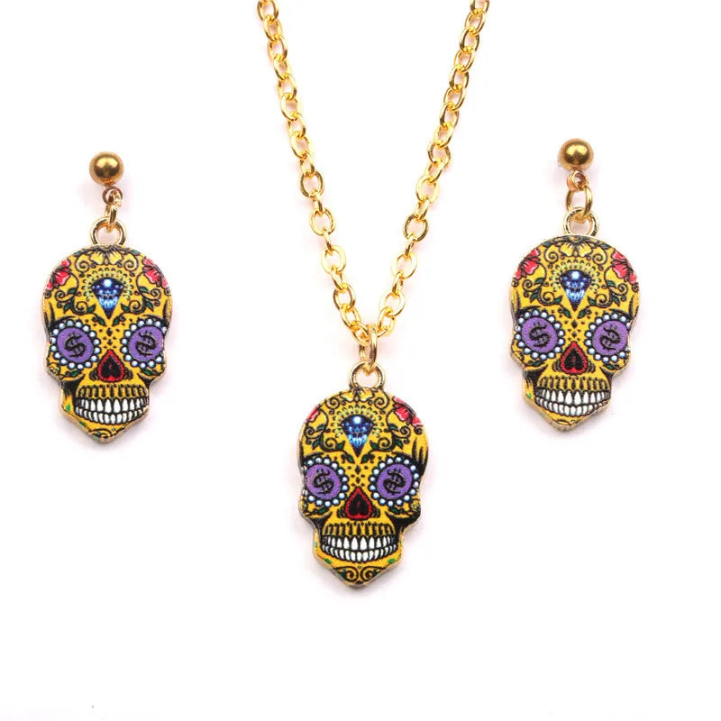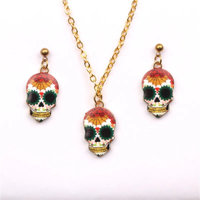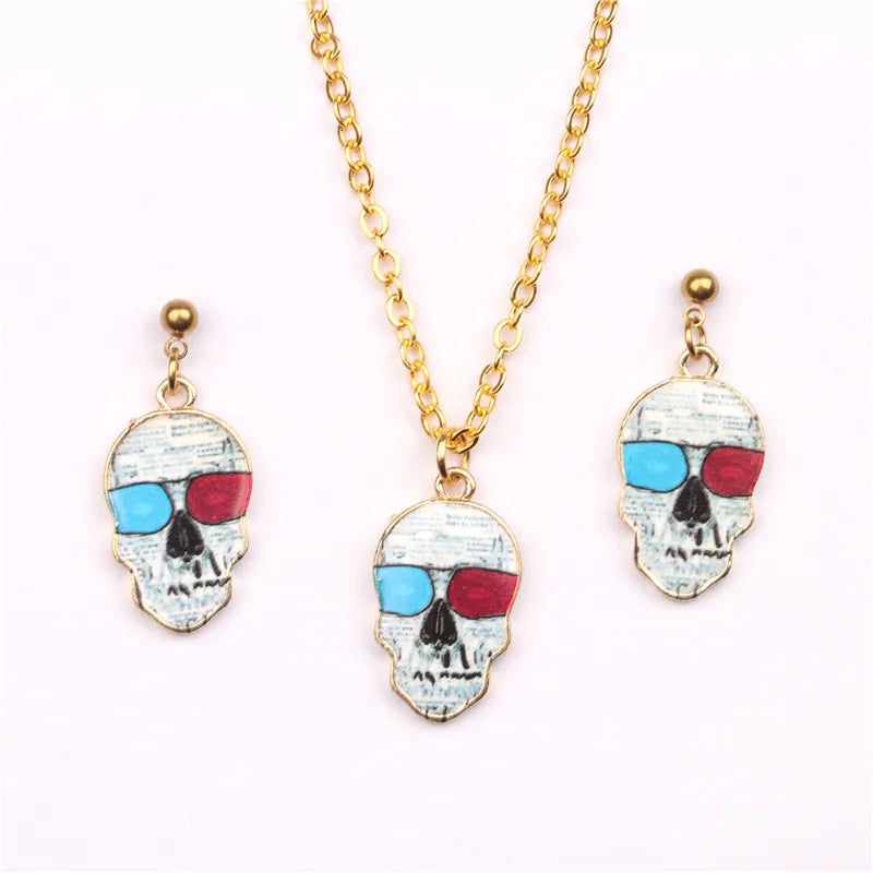 Fashion Skull Alloy Enamel Halloween Women'S Earrings Necklace - 01