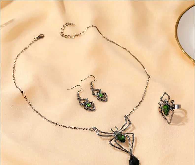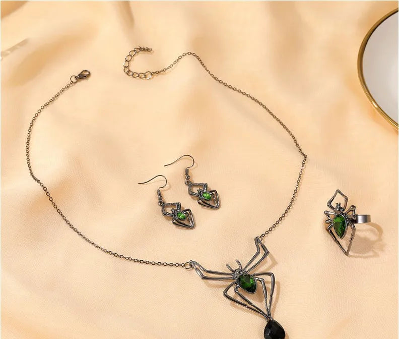 Fashion Spider Alloy Inlay Rhinestones Halloween Women'S Rings Earrings Necklace - Suit