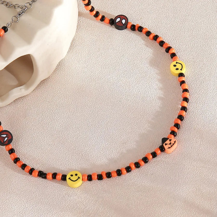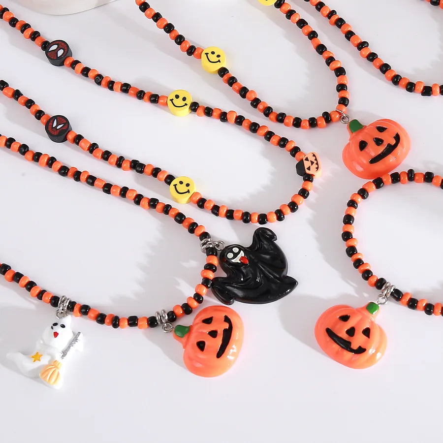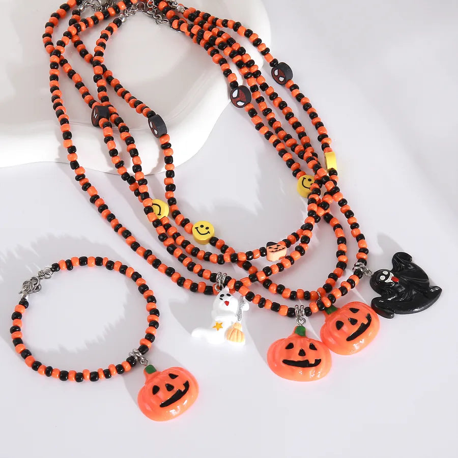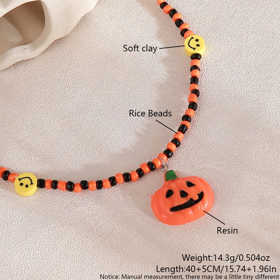 Gothic Halloween Pumpkin Smiley Pendant Necklace Bracelet Set Dark Style Resin Jewelry For Men And Women - Pumpkin Spider Halloween Necklace Nah05-7