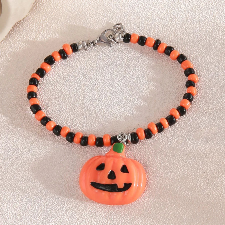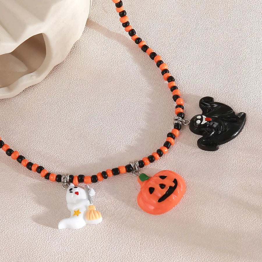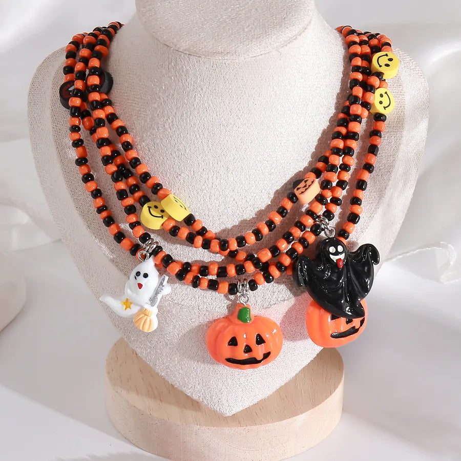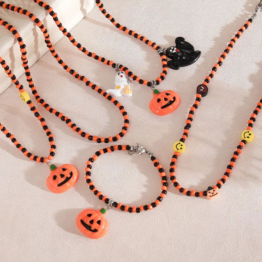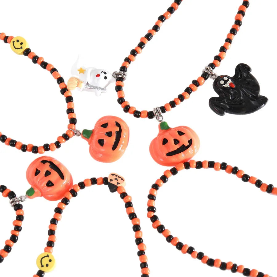 Gothic Halloween Pumpkin Smiley Pendant Necklace Bracelet Set Dark Style Resin Jewelry For Men And Women - Pumpkin Spider Halloween Necklace Nah05-7