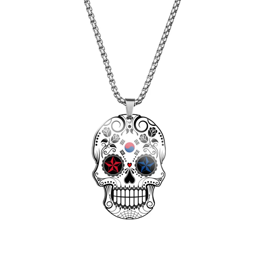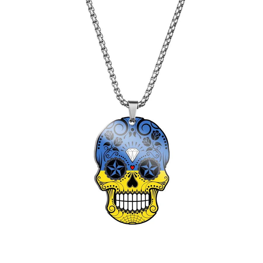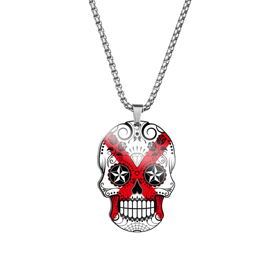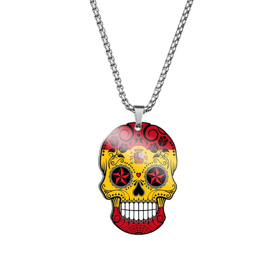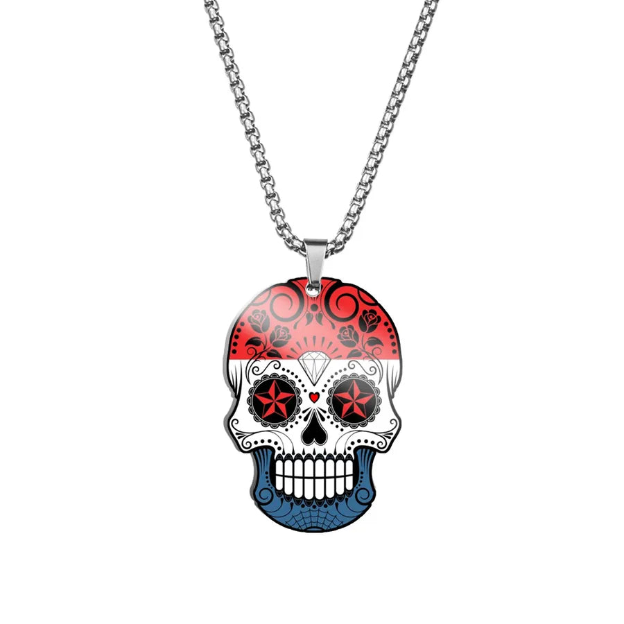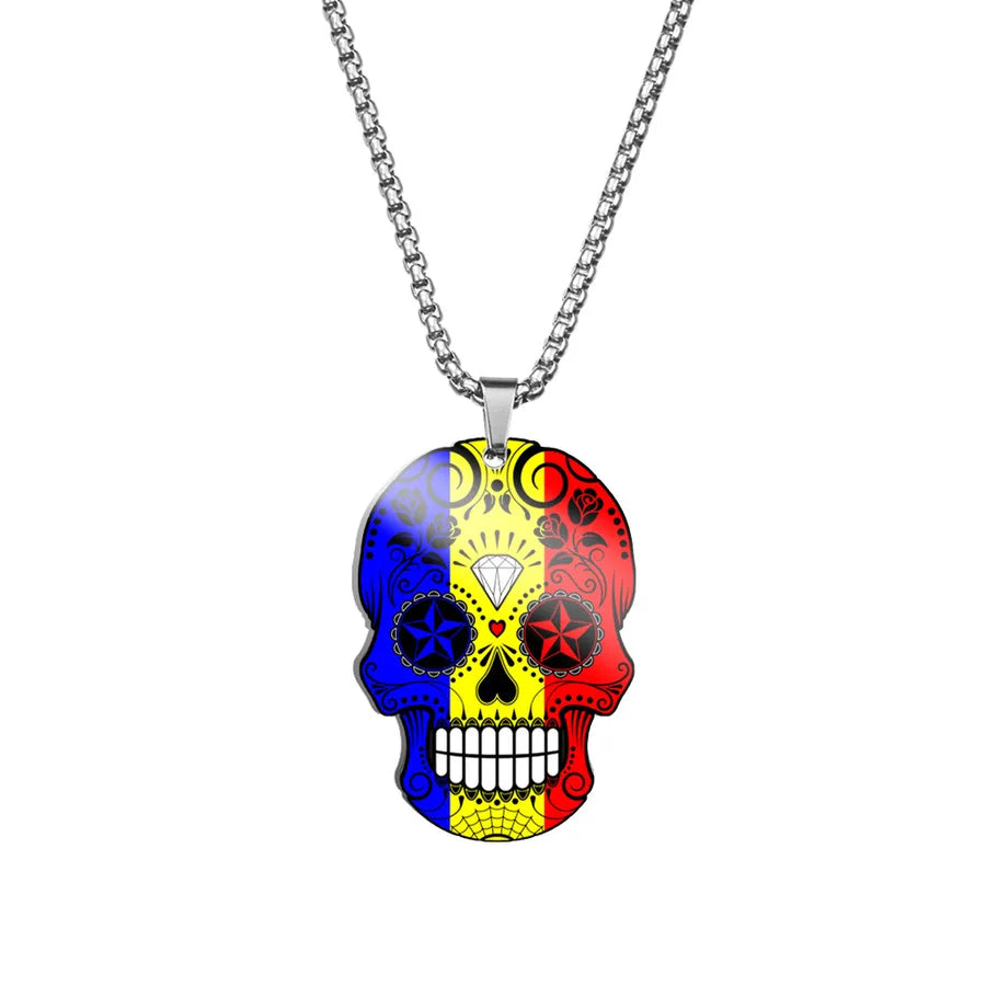 Halloween Color Printed Stainless Steel Necklace Day Of The Dead Skull Flag Titanium Steel Pendant Jewelry Geometric Cartoon Design - Albania / Steel Color