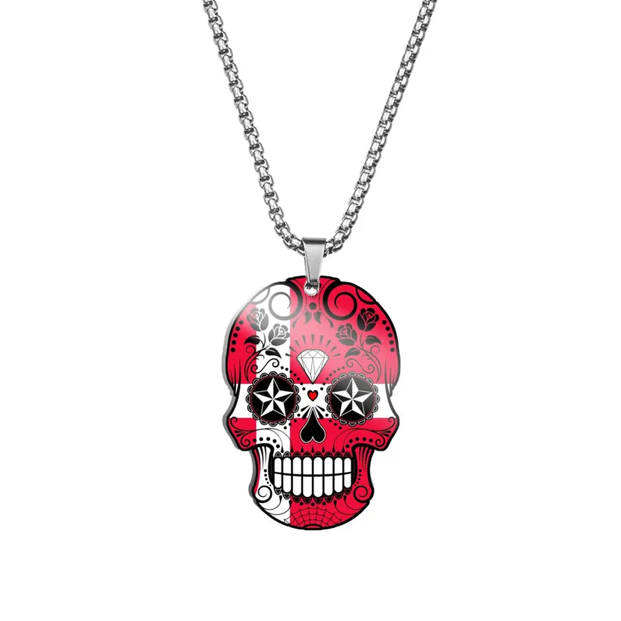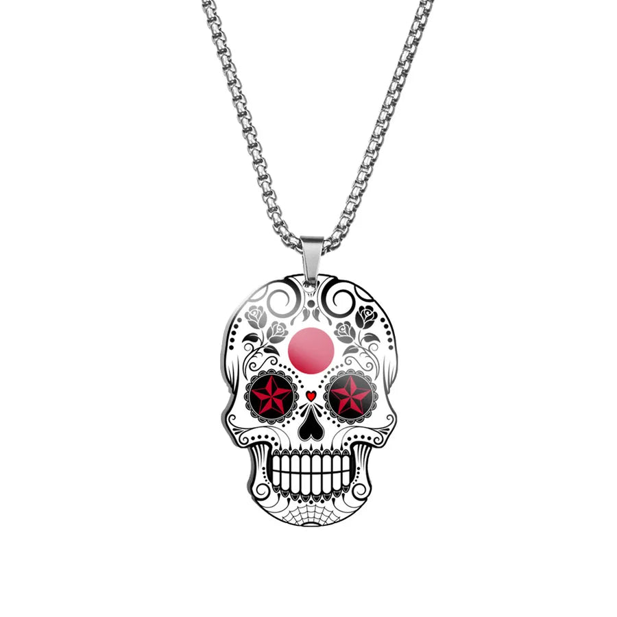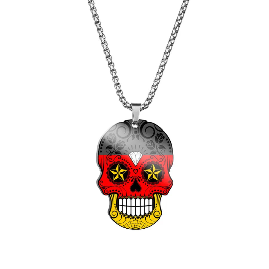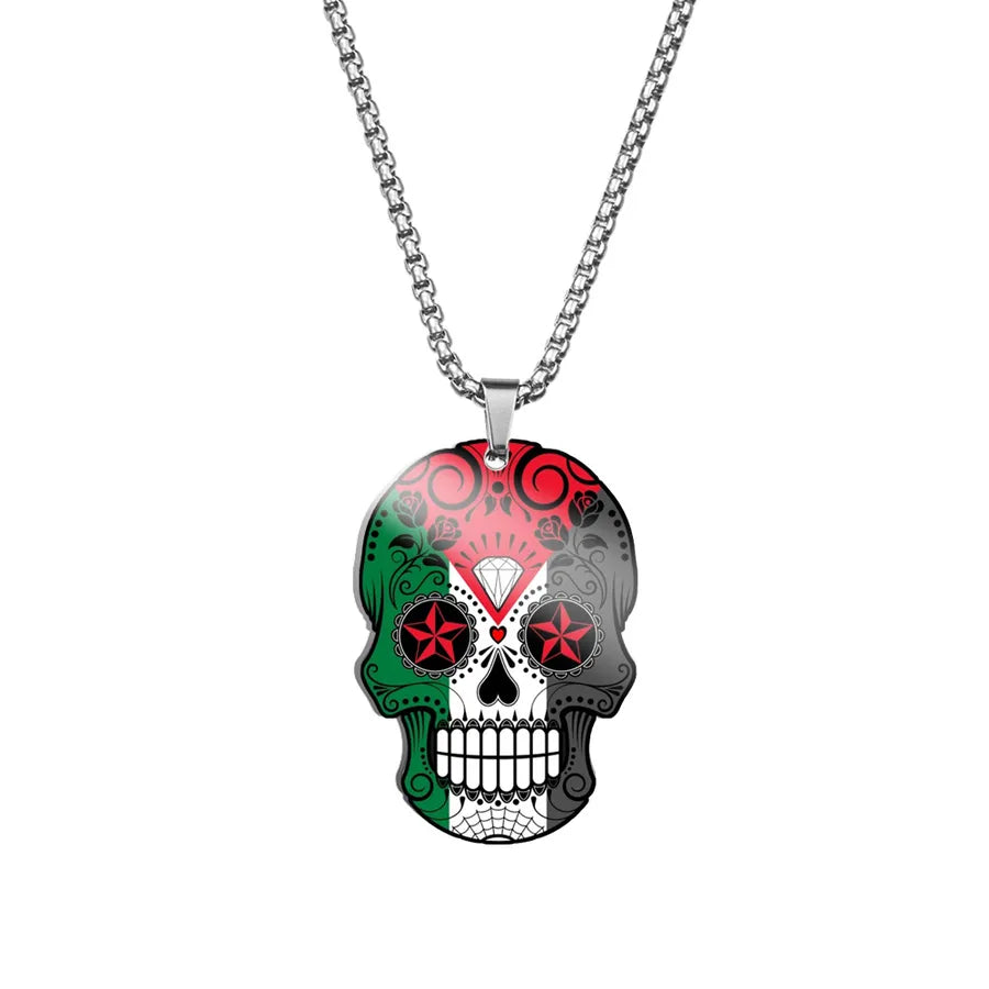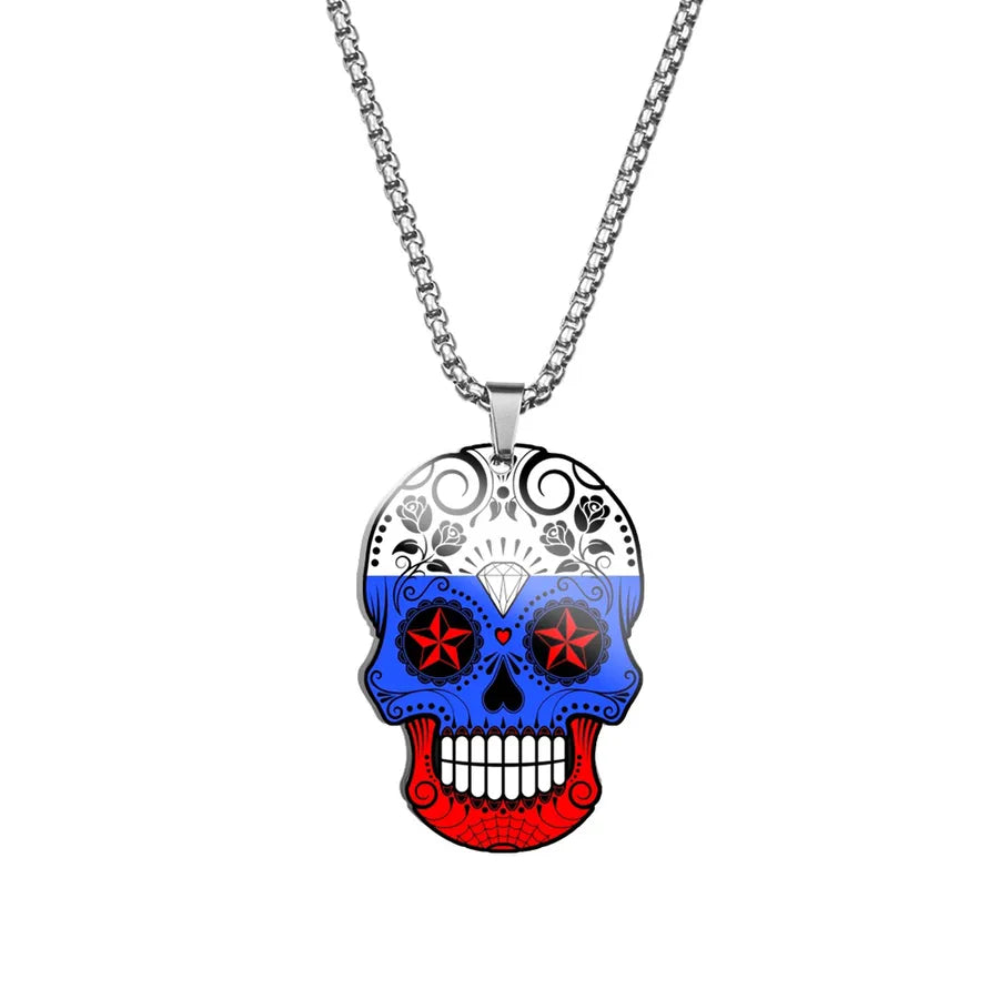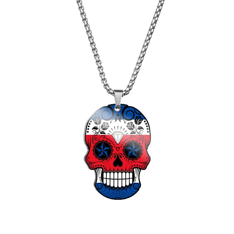 Halloween Color Printed Stainless Steel Necklace Day Of The Dead Skull Flag Titanium Steel Pendant Jewelry Geometric Cartoon Design - Albania / Steel Color