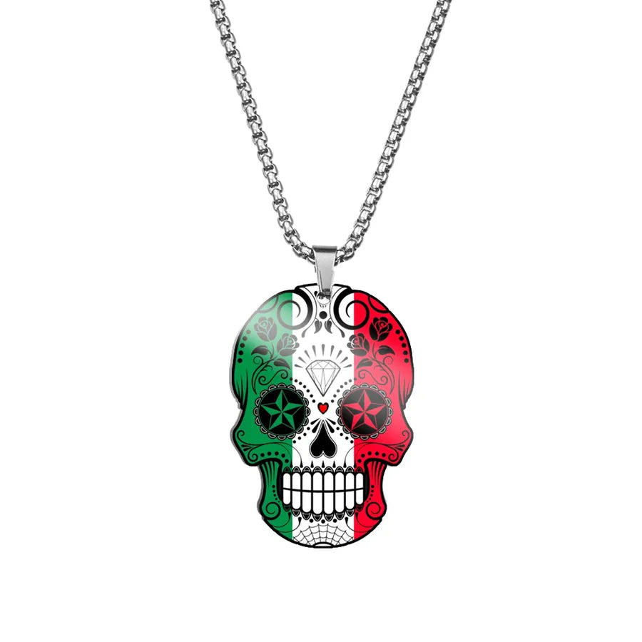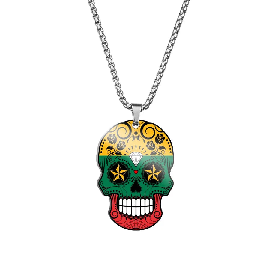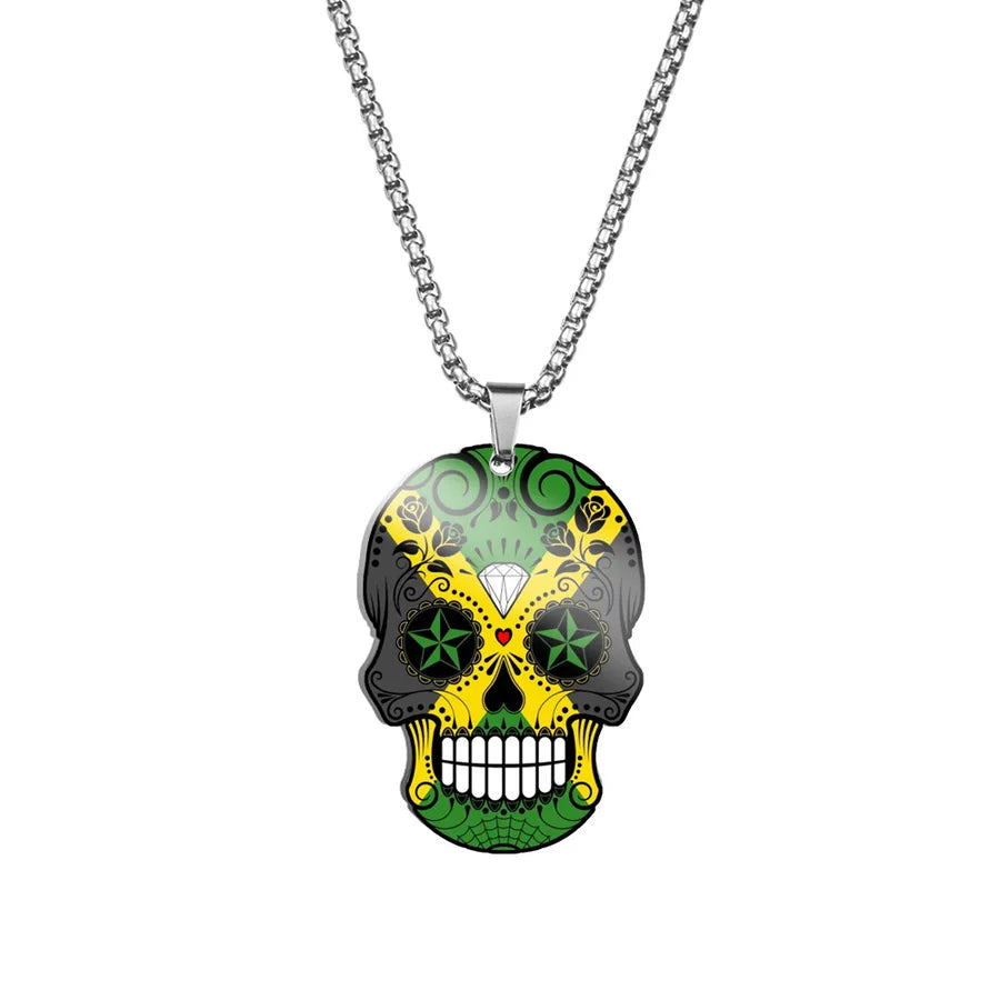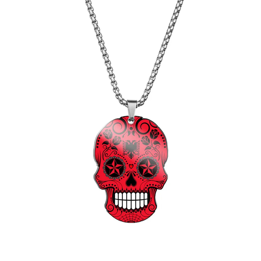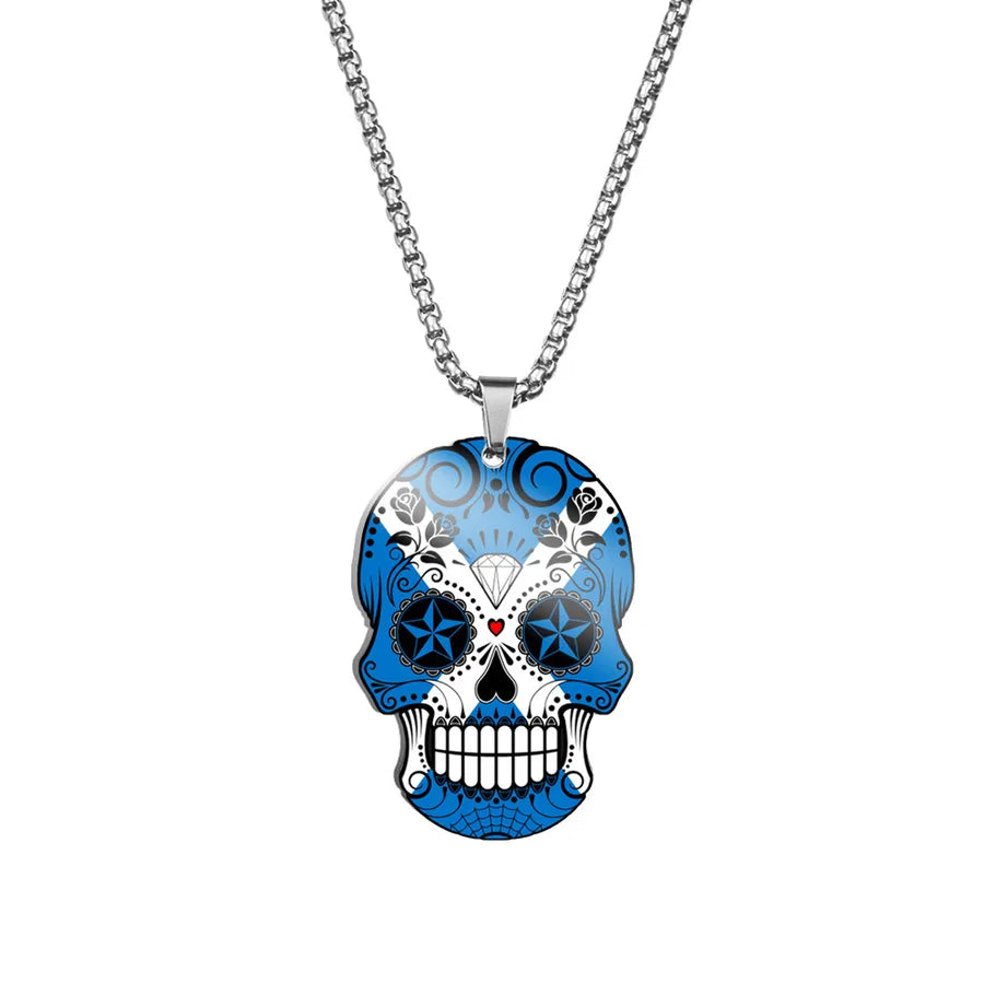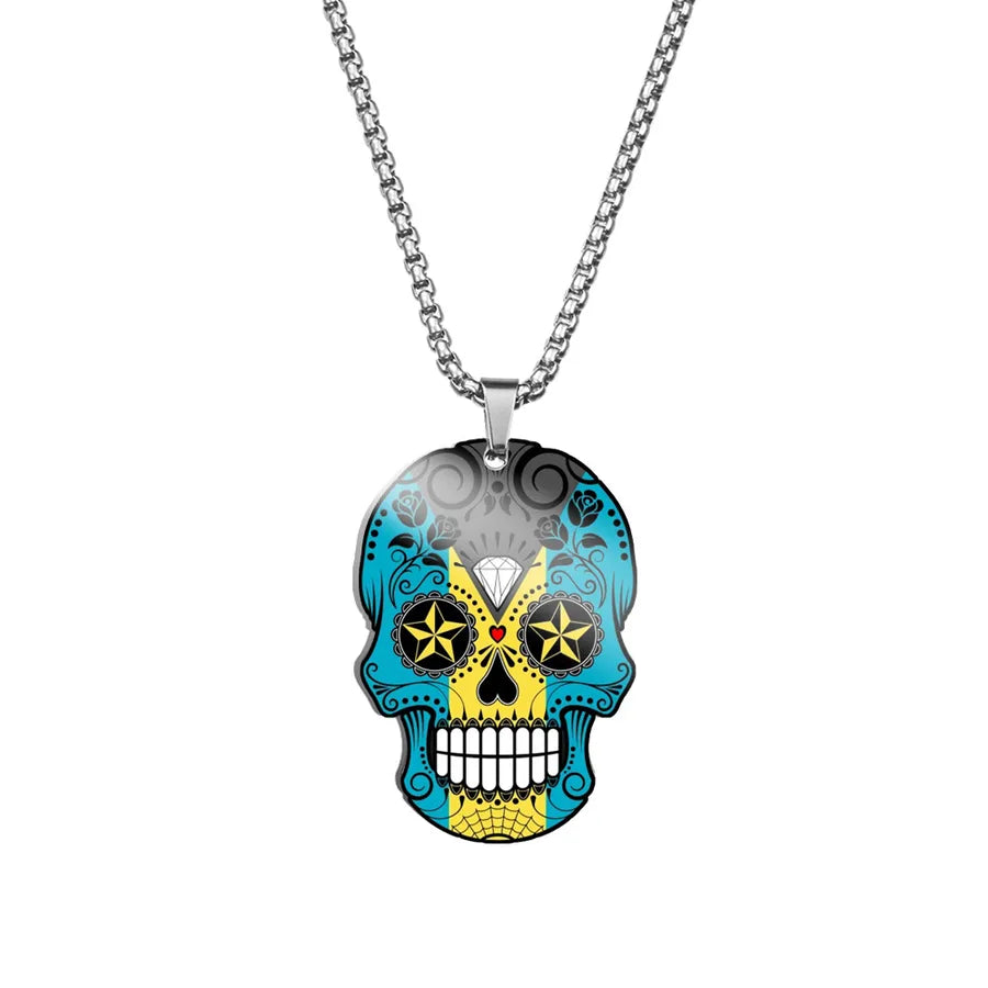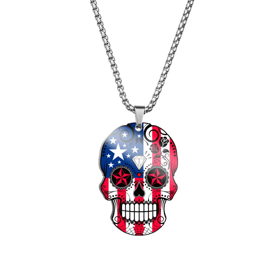Halloween Color Printed Stainless Steel Necklace Day Of The Dead Skull Flag Titanium Steel Pendant Jewelry Geometric Cartoon Design - Albania / Steel Color