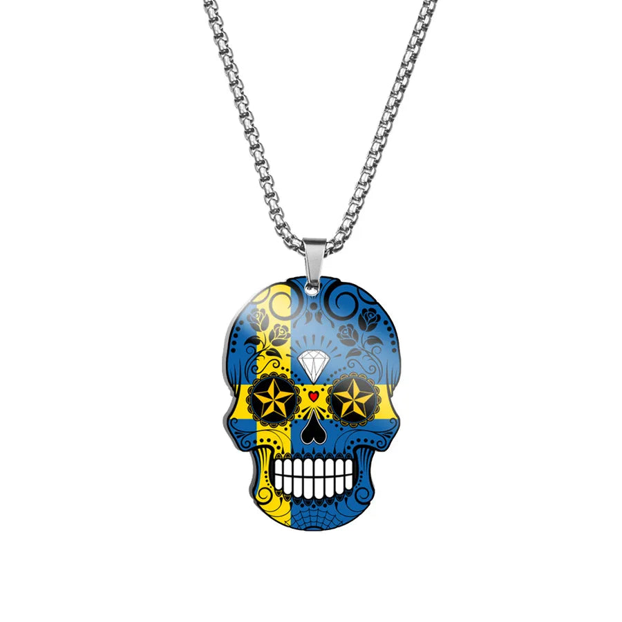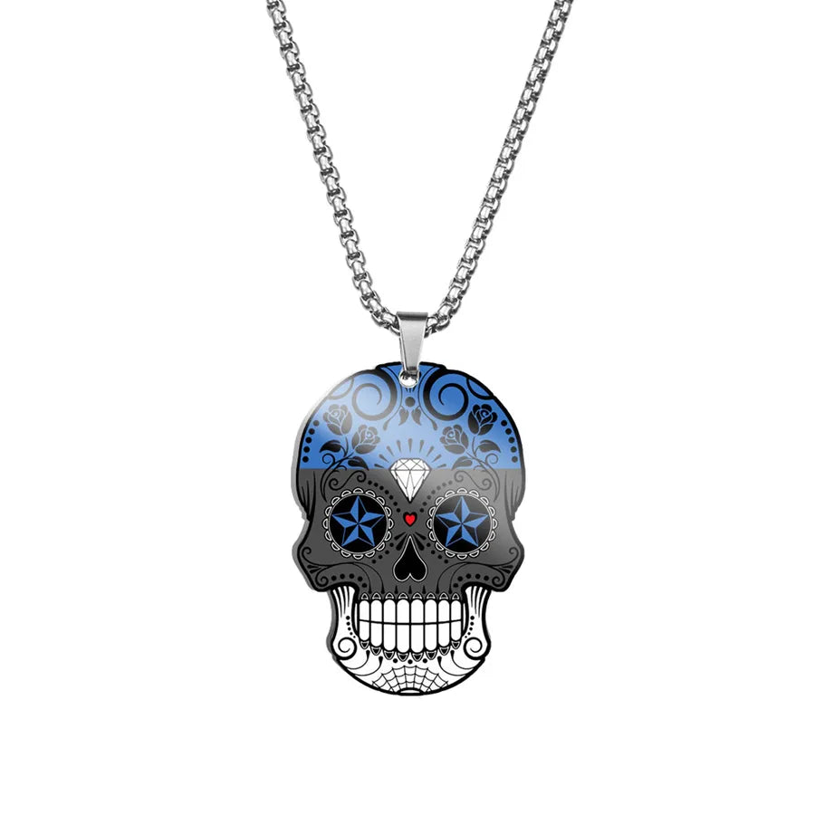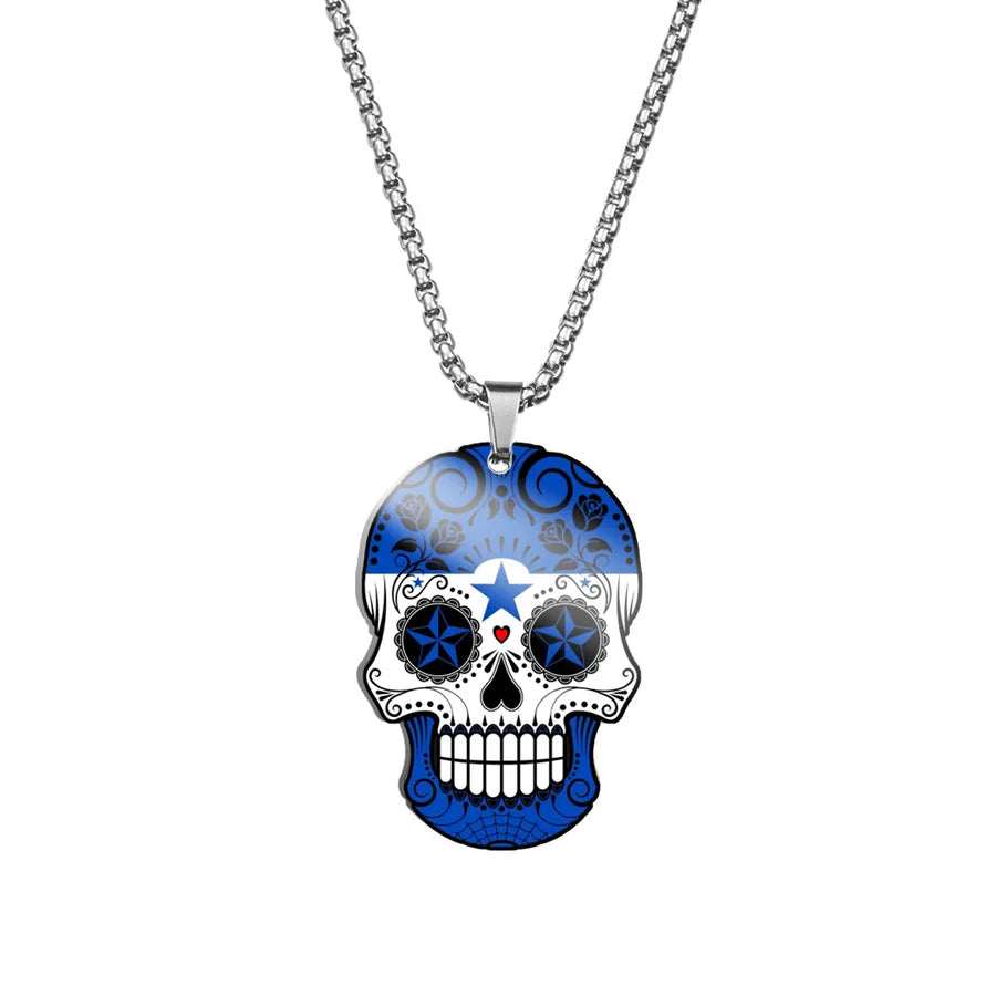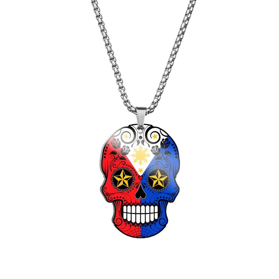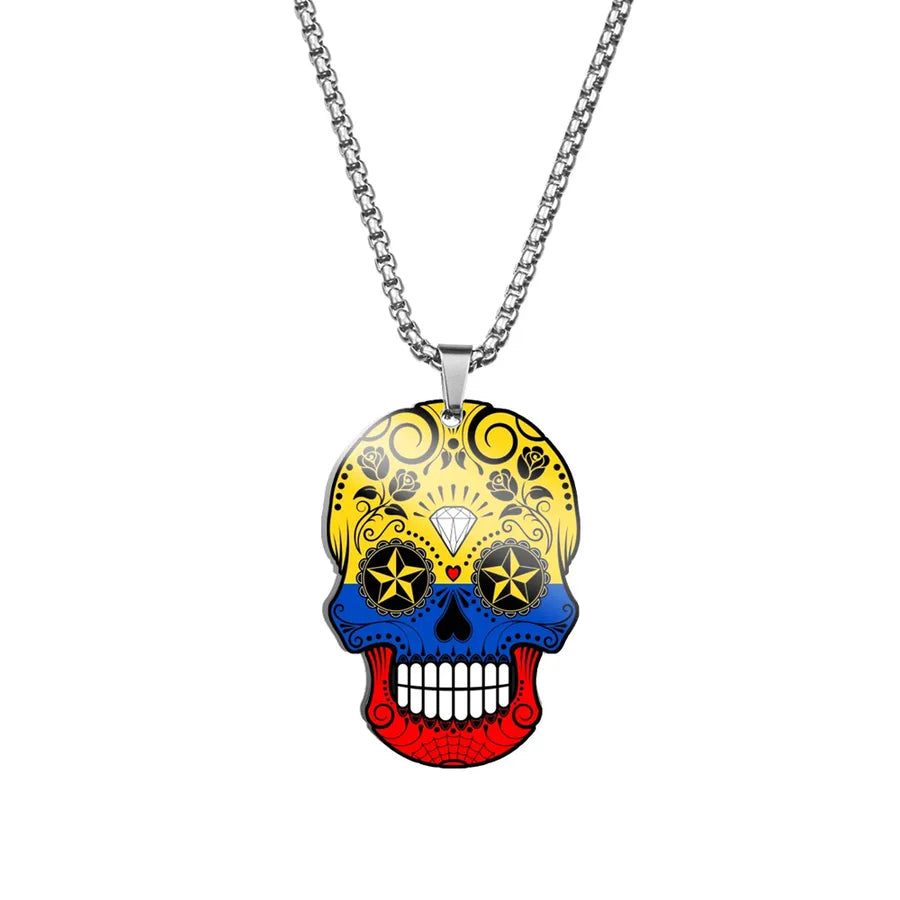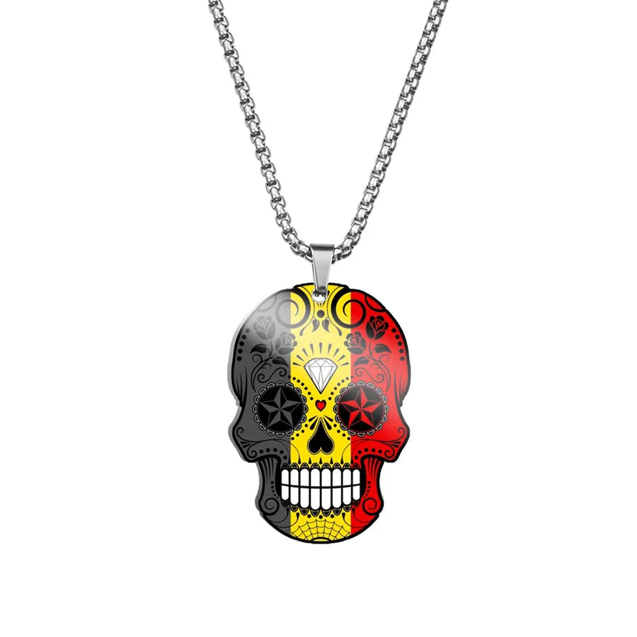Halloween Color Printed Stainless Steel Necklace Day Of The Dead Skull Flag Titanium Steel Pendant Jewelry Geometric Cartoon Design - Albania / Steel Color
