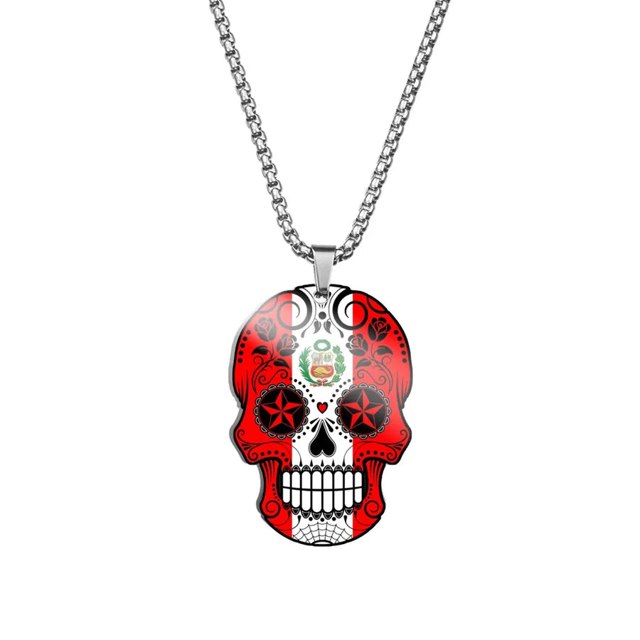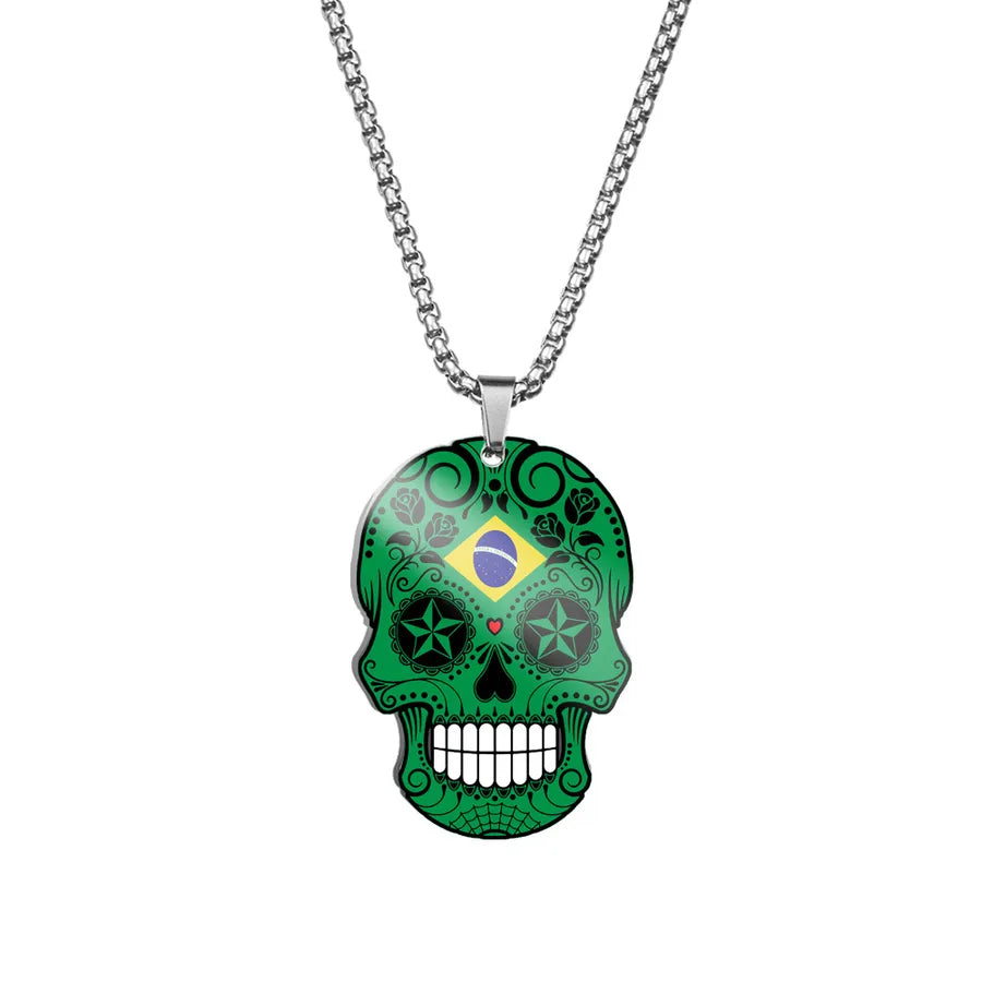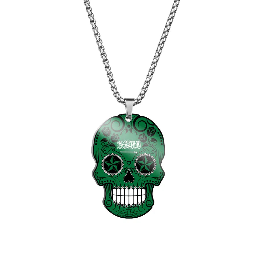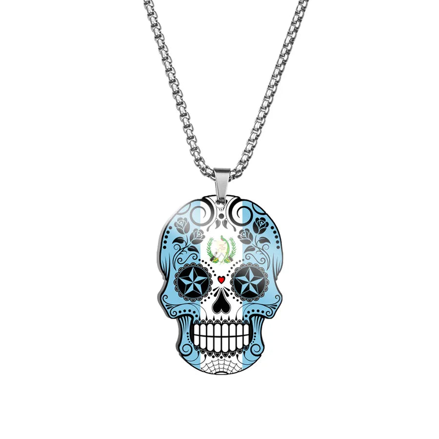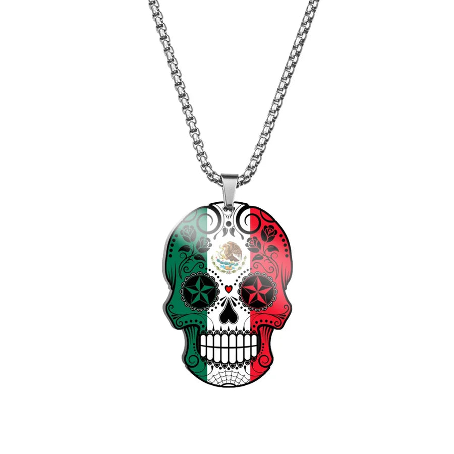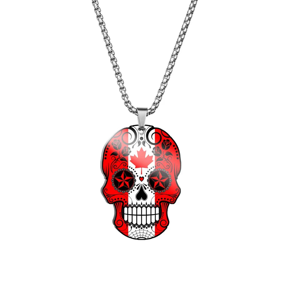 Halloween Color Printed Stainless Steel Necklace Day Of The Dead Skull Flag Titanium Steel Pendant Jewelry Geometric Cartoon Design - Albania / Steel Color