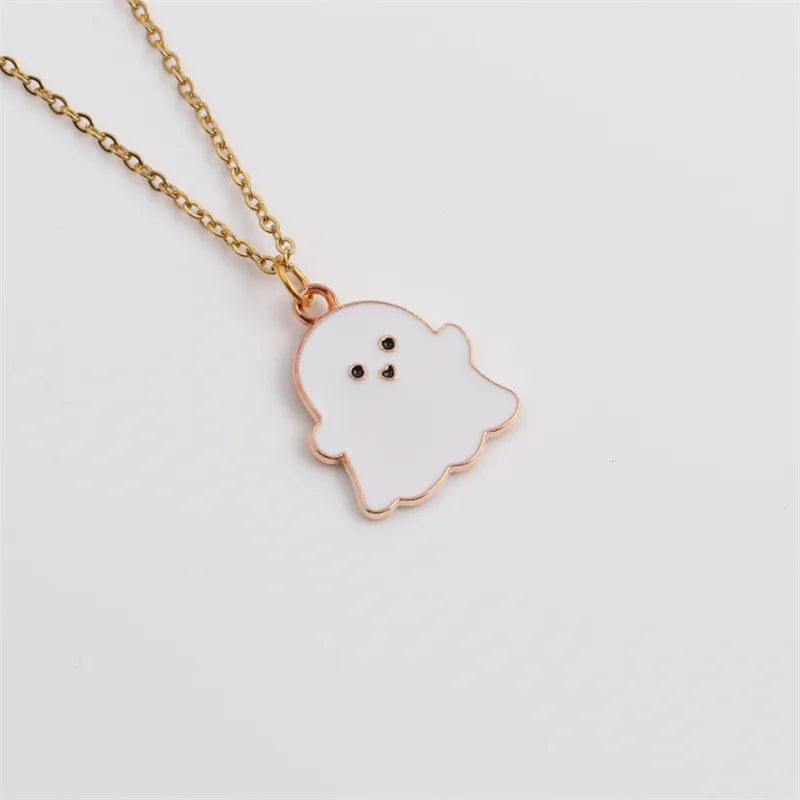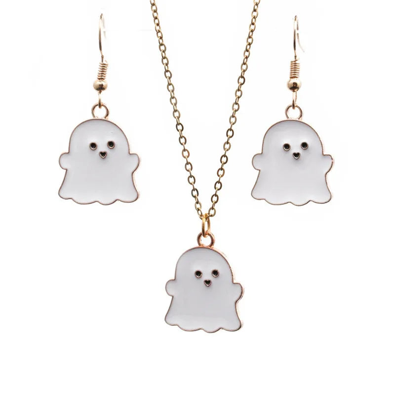 halloween fashion alloy ghost earrings necklace set wholesale jewelry nihaodropshipping - White Ghost Earrings and Necklace Set