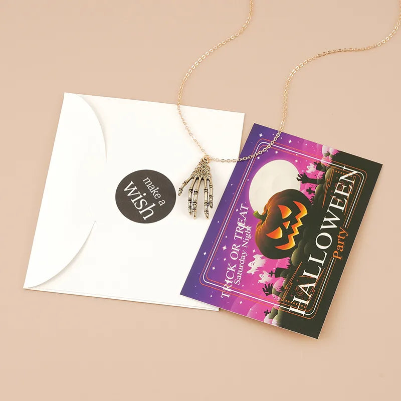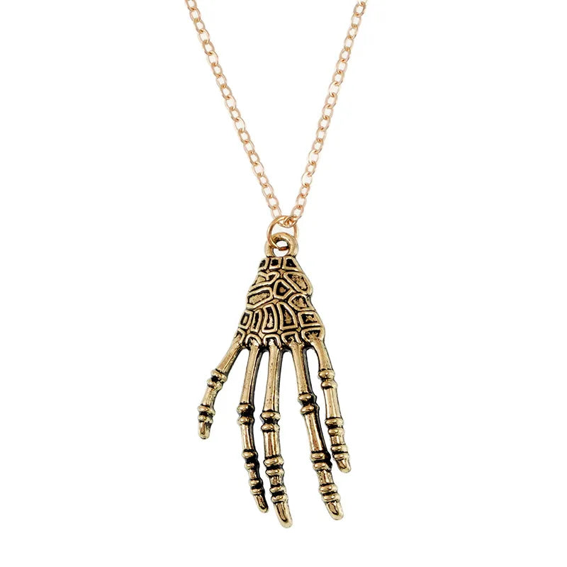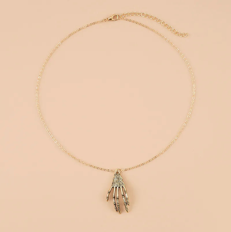 Halloween Skeleton Hand Claw Pendant Necklace Unique Personality Card Design Funny Gothic Style Unisex Metal Alloy Necklace - Bronze 0992