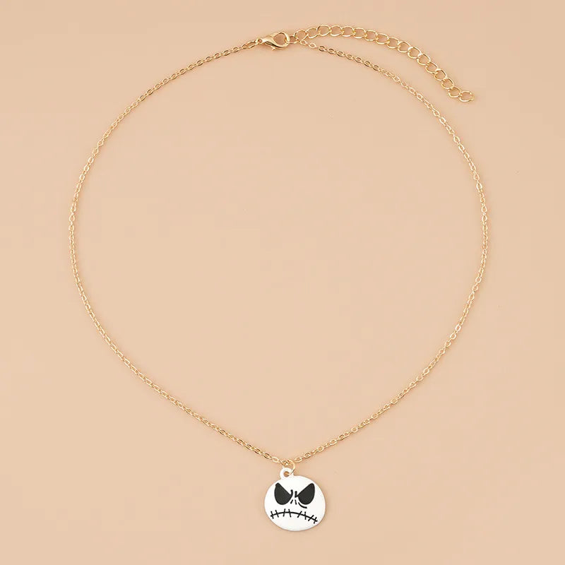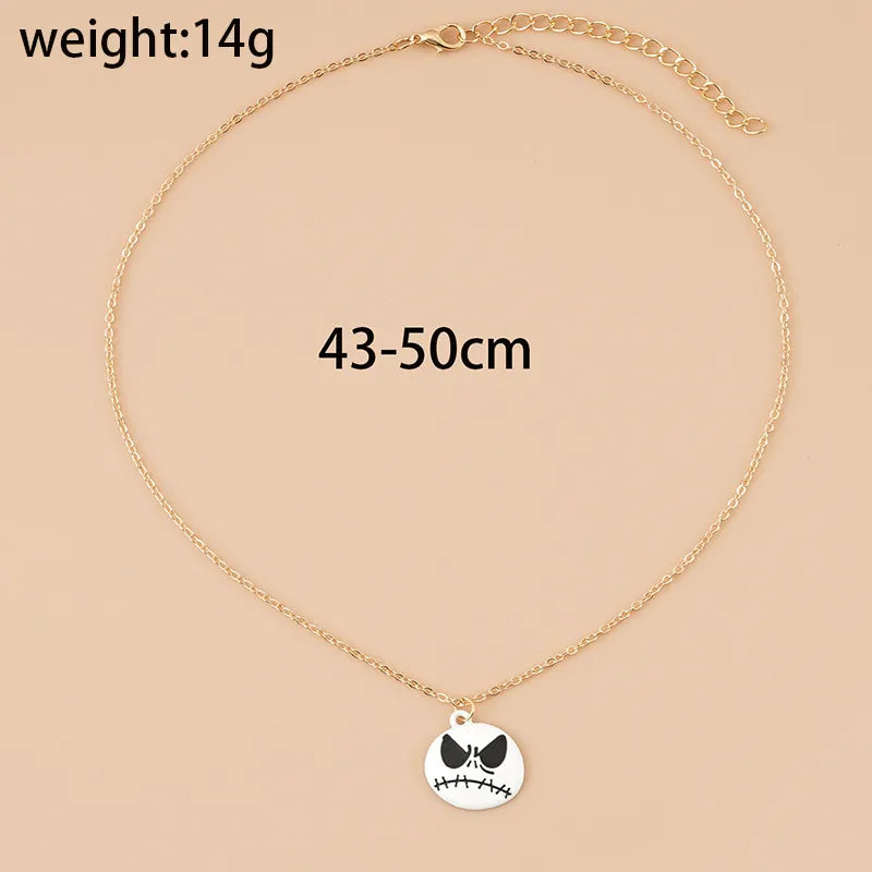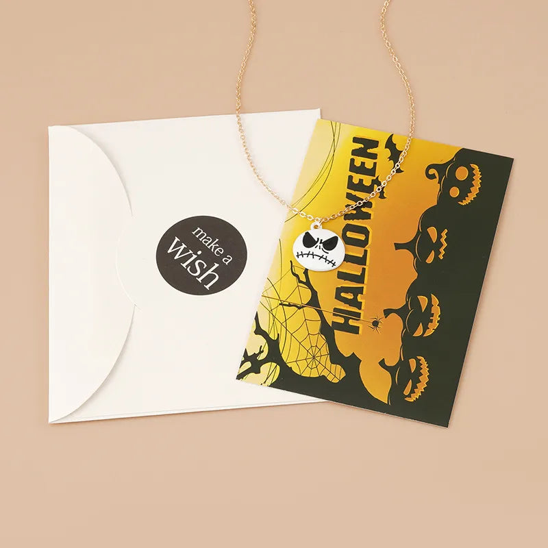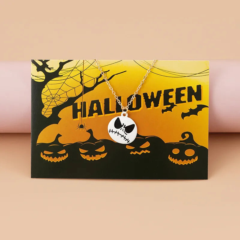 Halloween Skeleton Head Themed Necklaces Funny Individualized Ghost Pendants Card Design Dark Monster Necklaces Unisex - Black and White 0994