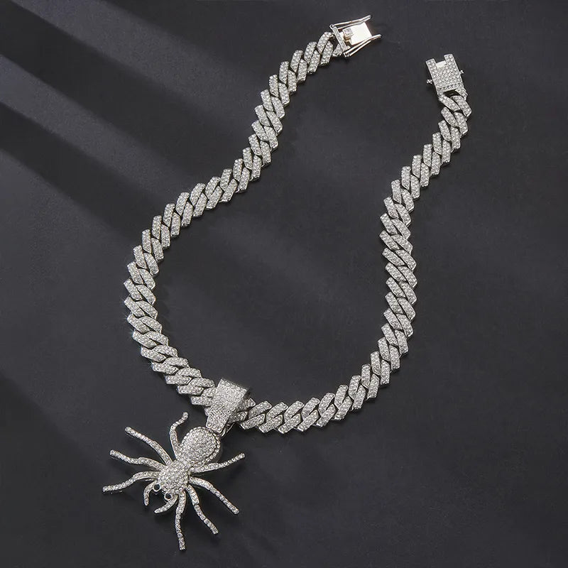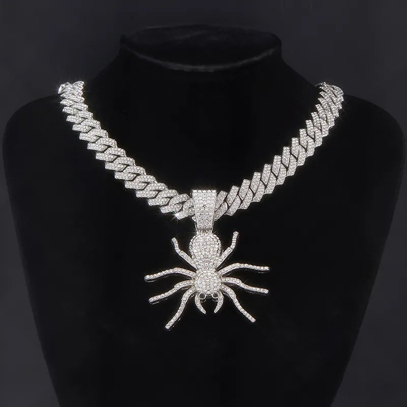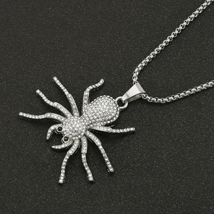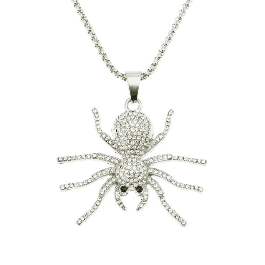 Hip-Hop Rock Spider Rhinestones Alloy Pendant Necklaces Halloween Wholesale - Silver