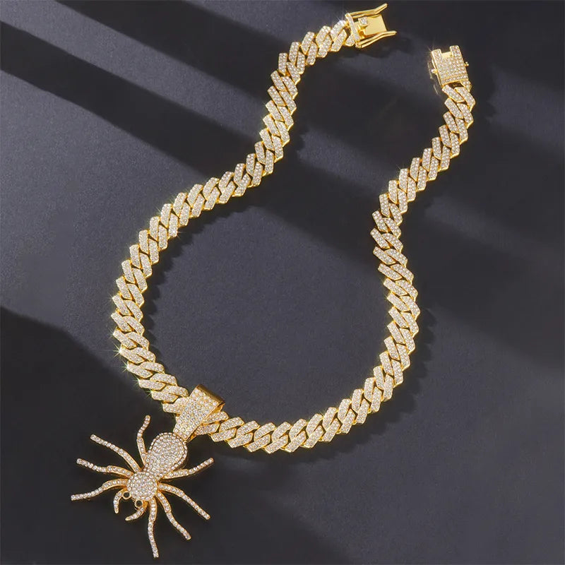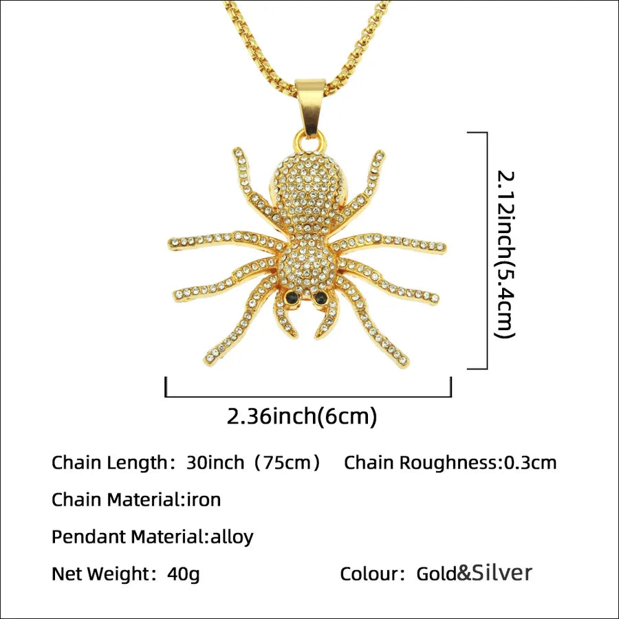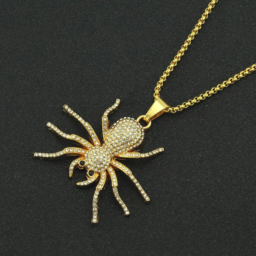 Hip-Hop Rock Spider Rhinestones Alloy Pendant Necklaces Halloween Wholesale