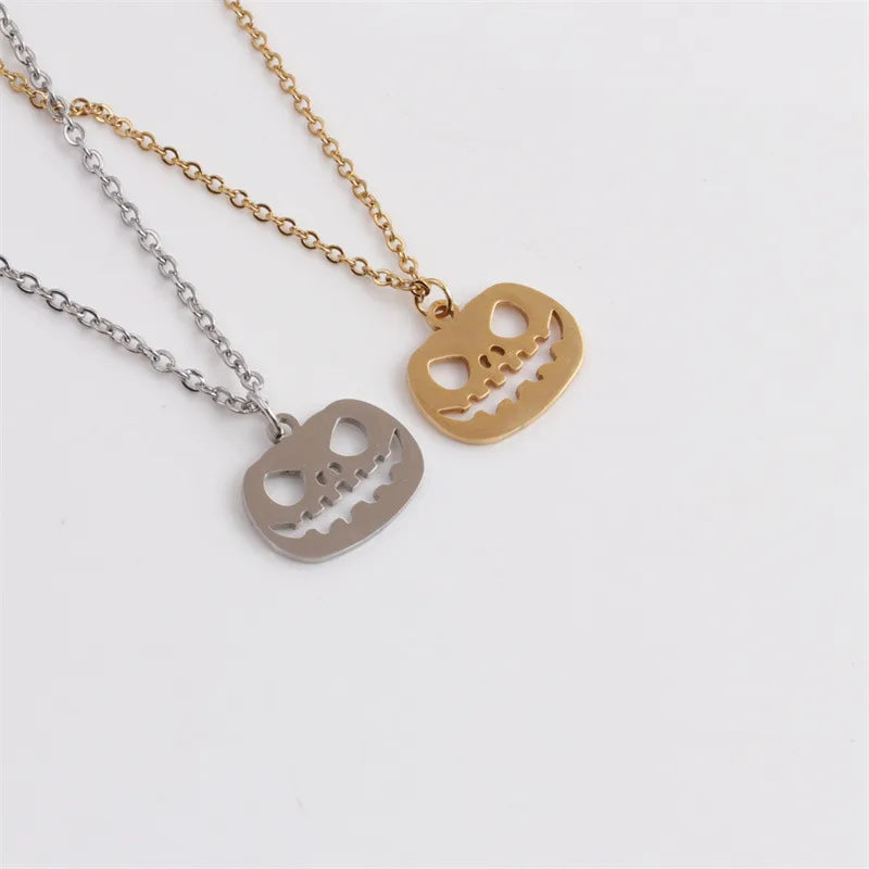 new fashion simple titanium steel pendant ornament stainless steel cutting ornament diy halloween decoration pumpkin necklace - Golden Pumpkin