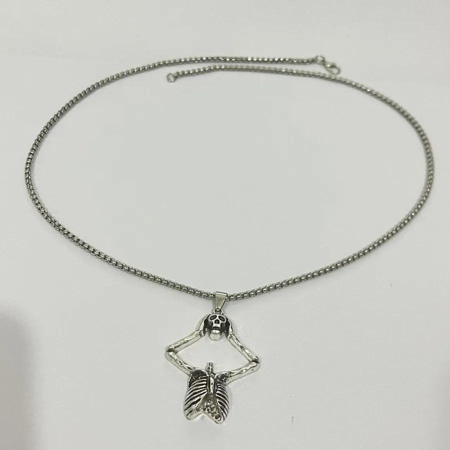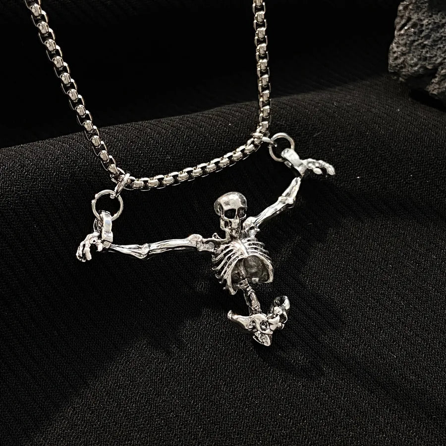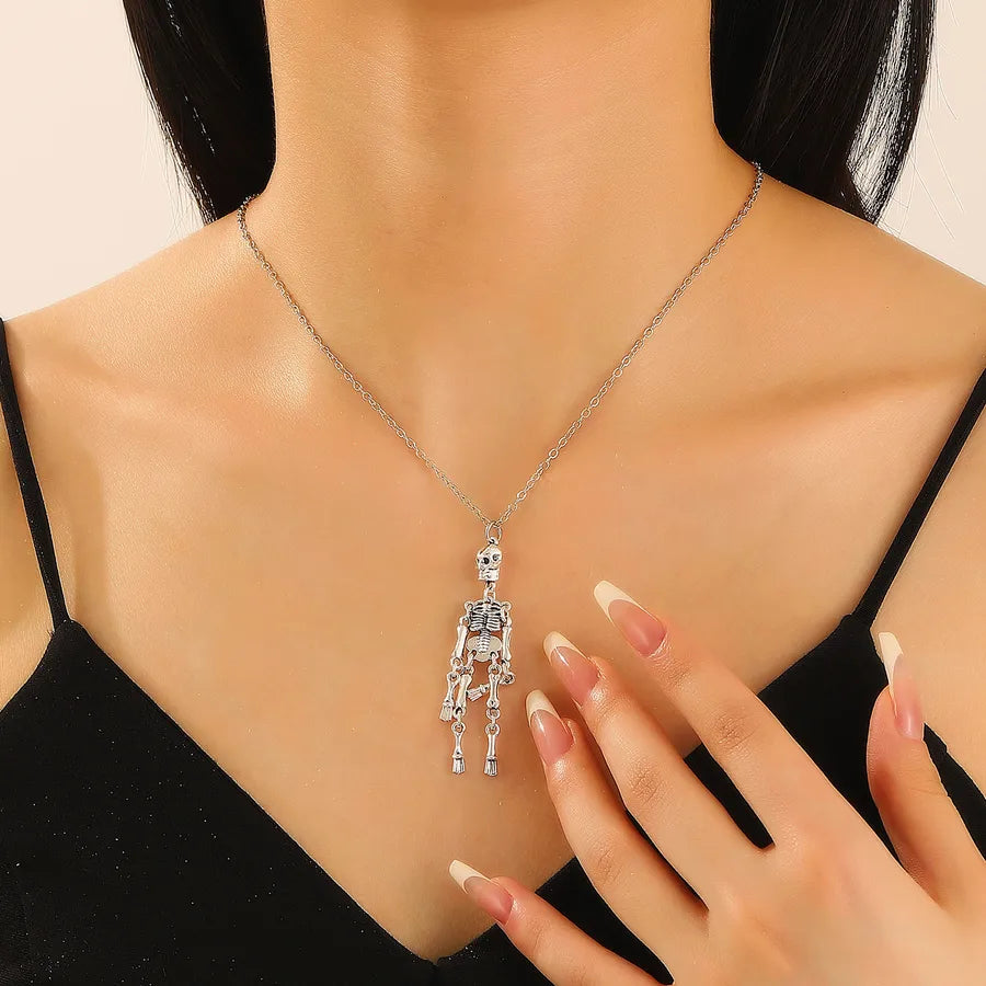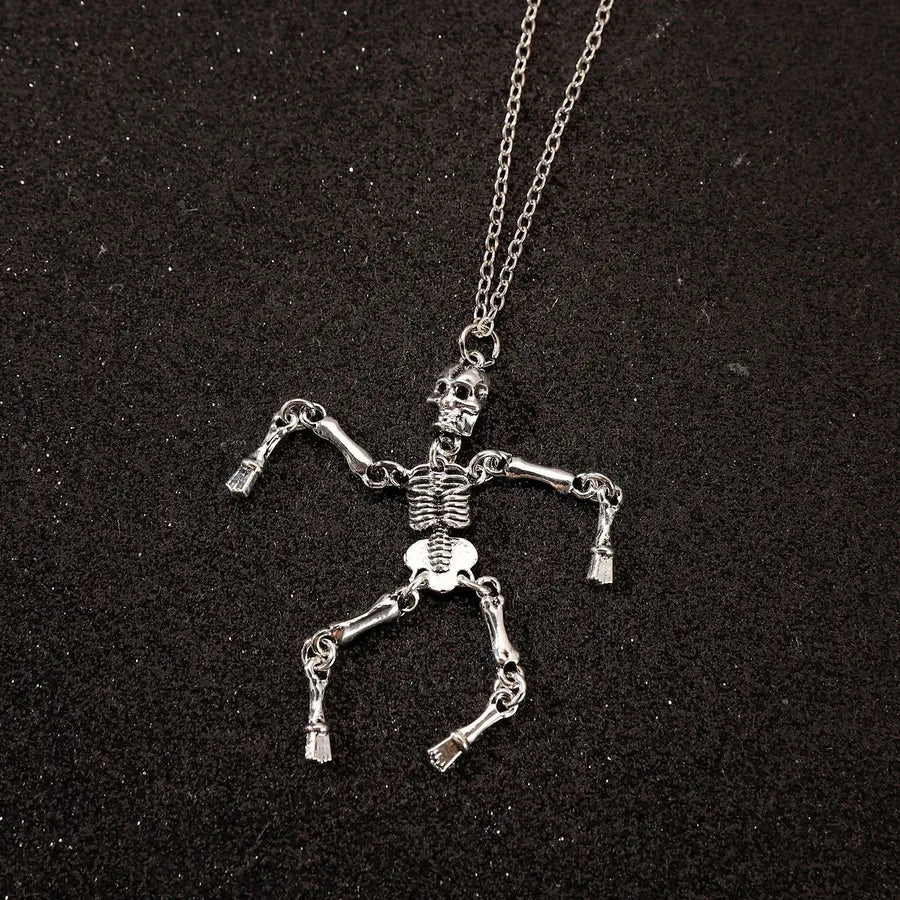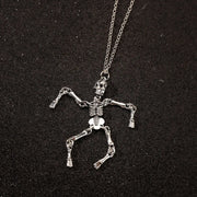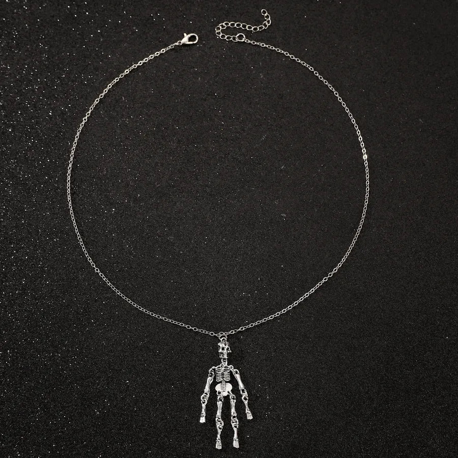 Punk Style Halloween Skeleton Pendant Necklace Hip Hop Dark Style For Men And Women Halloween Themed Cartoon Alloy Jewelry - Ancient Silver WG-0369