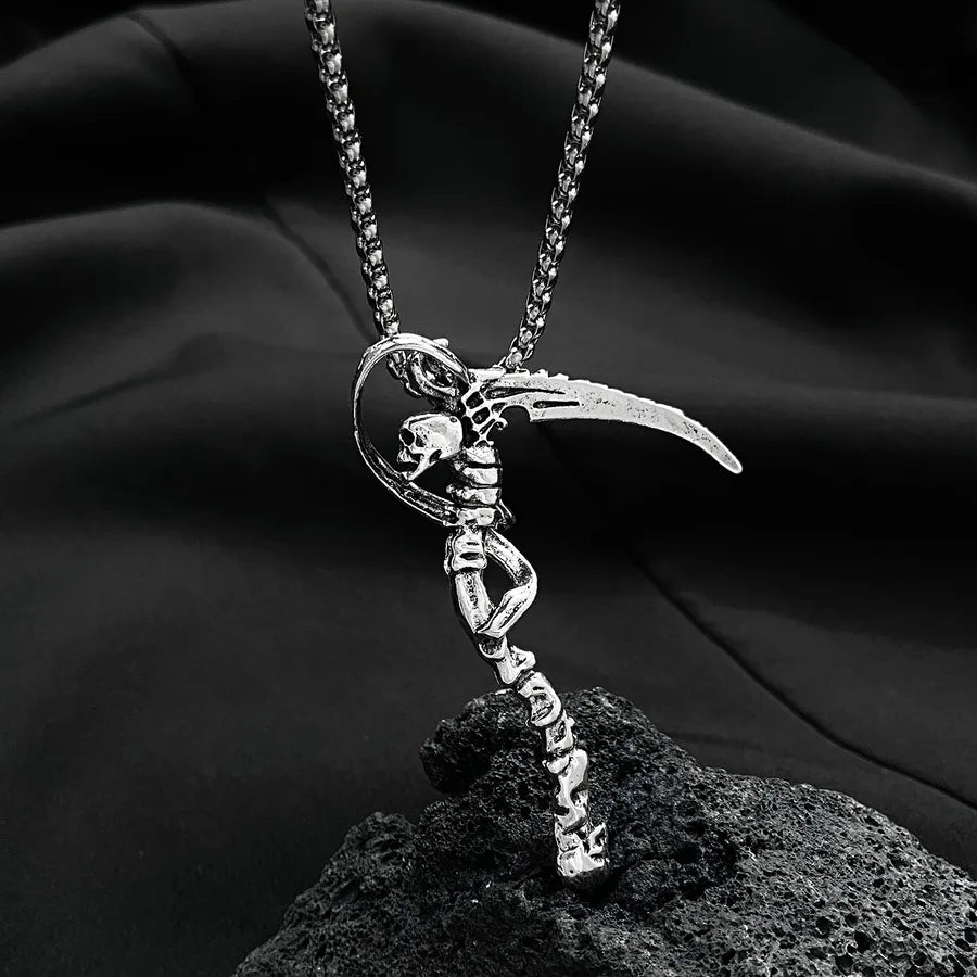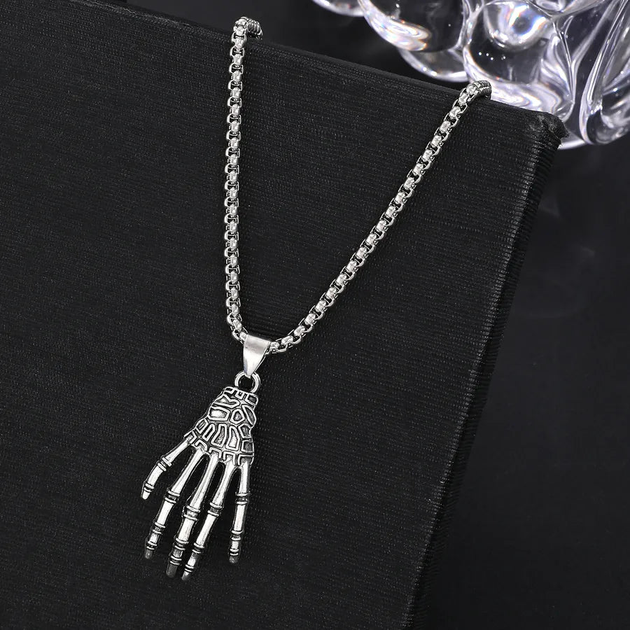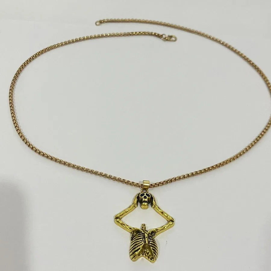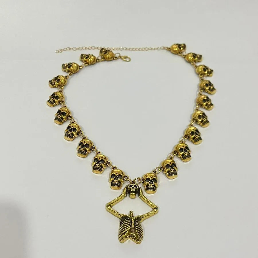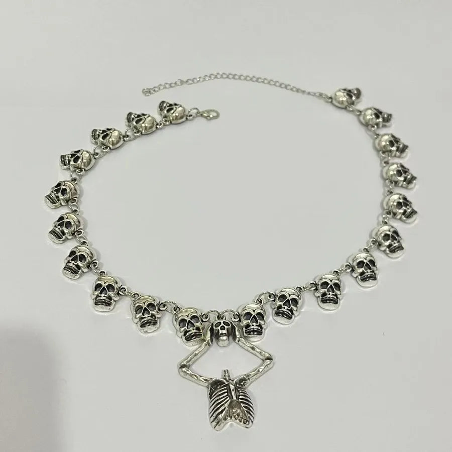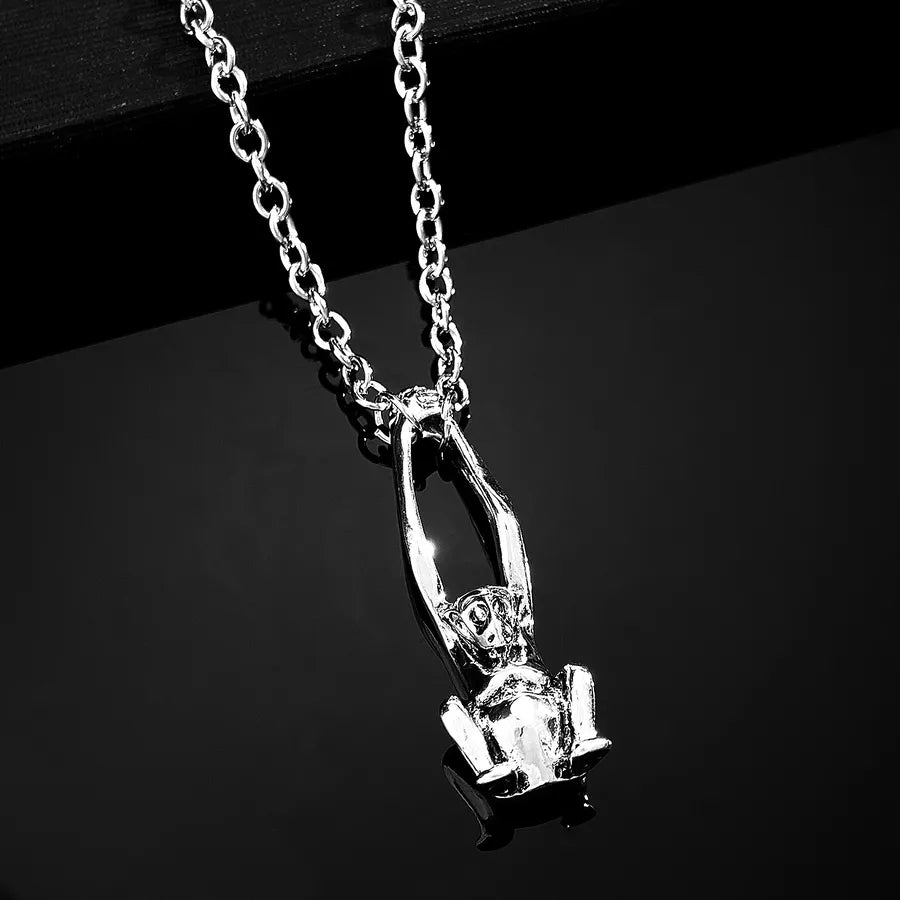 Punk Style Halloween Skeleton Pendant Necklace Hip Hop Dark Style For Men And Women Halloween Themed Cartoon Alloy Jewelry - Ancient Silver WG-0369