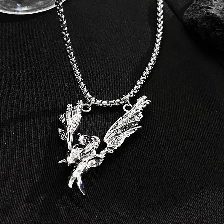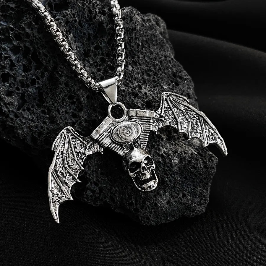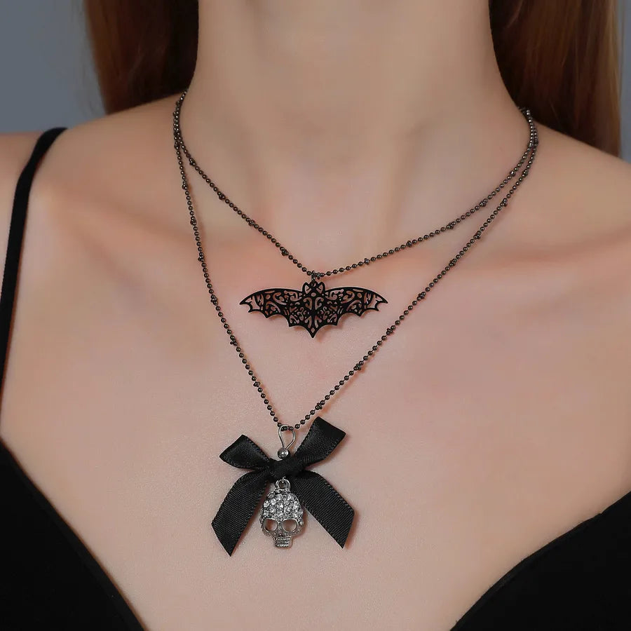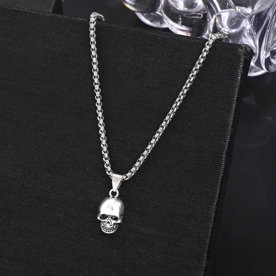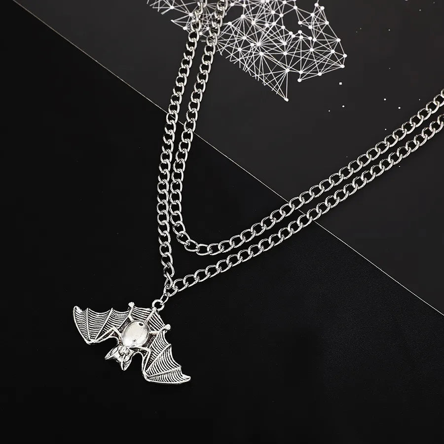 Punk Style Halloween Skeleton Pendant Necklace Hip Hop Dark Style For Men And Women Halloween Themed Cartoon Alloy Jewelry - Ancient Silver WG-0369