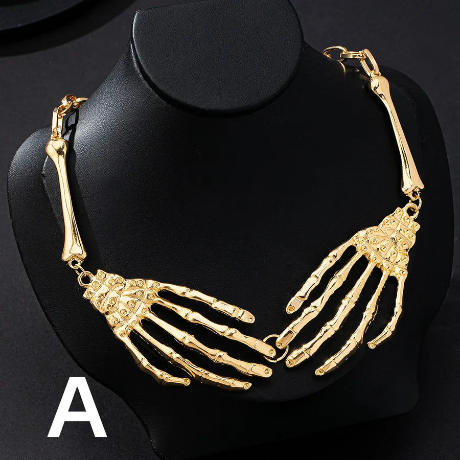 Punk Style Skeleton Hand Claw Necklace Men's Halloween Party Personalized Pendant Zinc Alloy Iron Alloy Lobster Clasp Chain