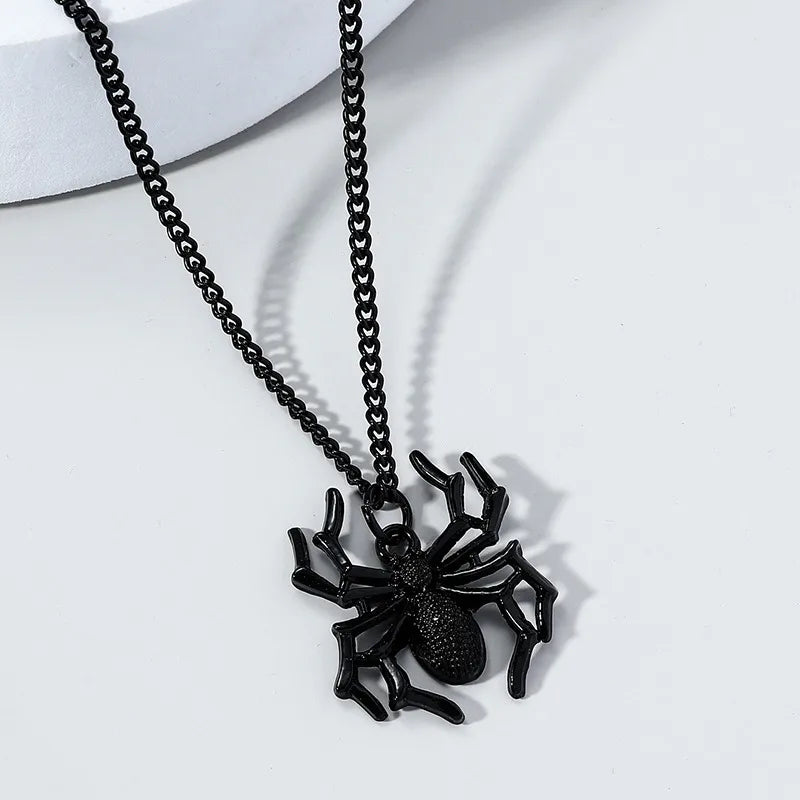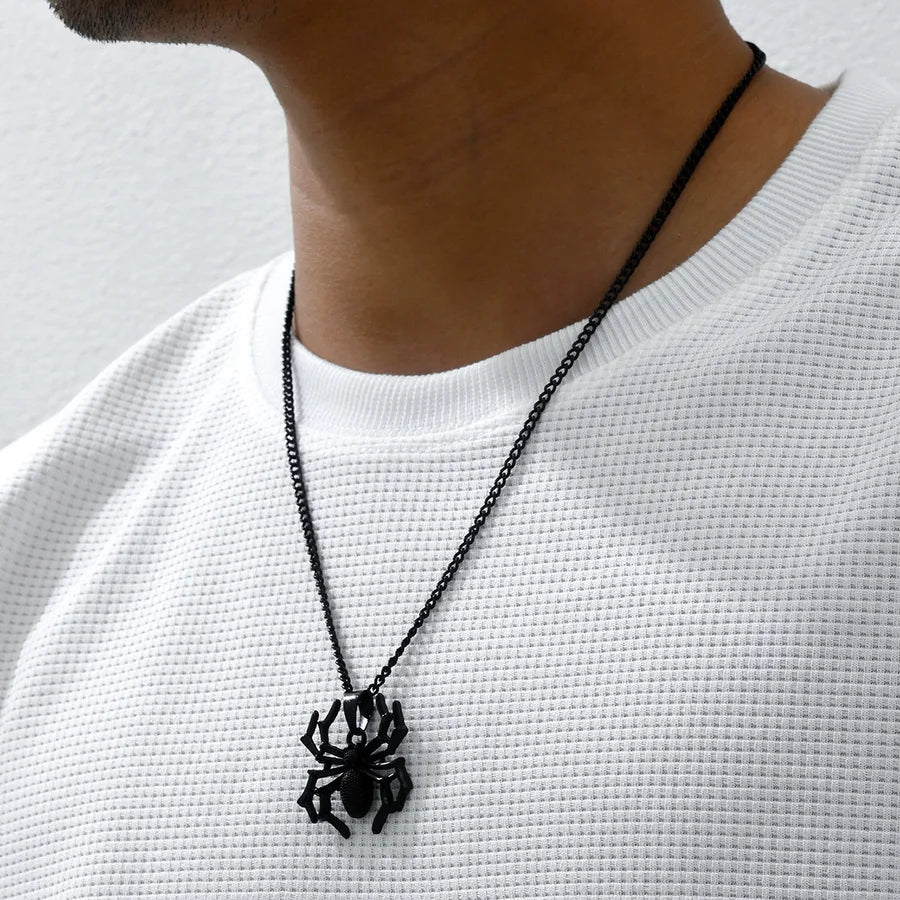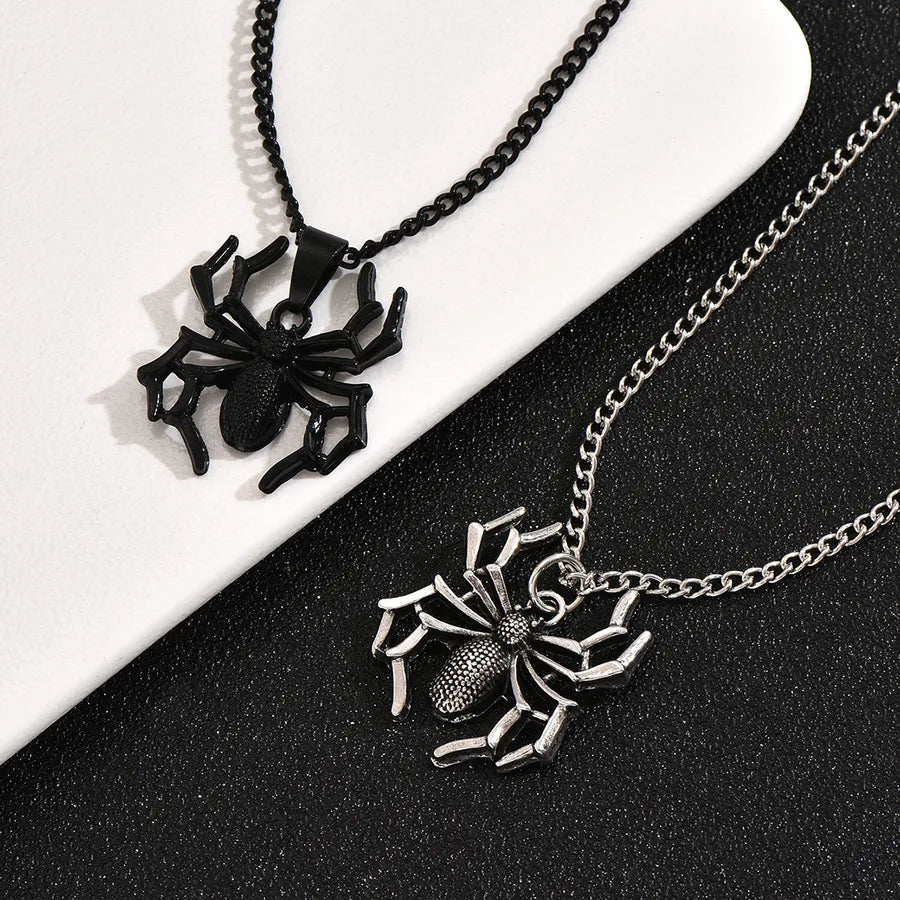 Retro Spider Alloy Stoving Varnish Plating Halloween Men'S Pendant Necklace - Black (with Chain)