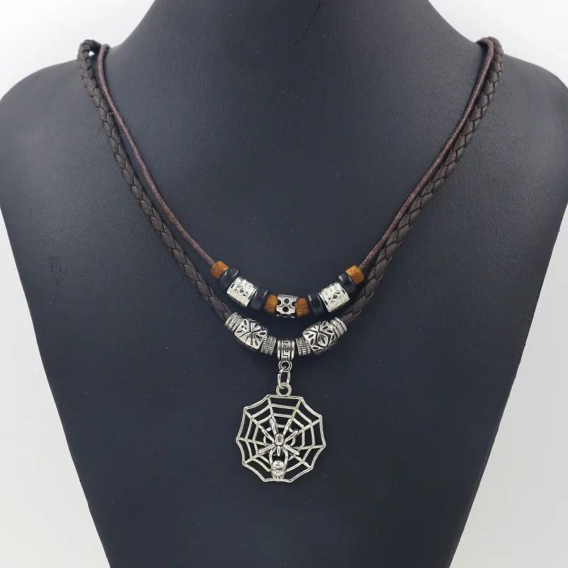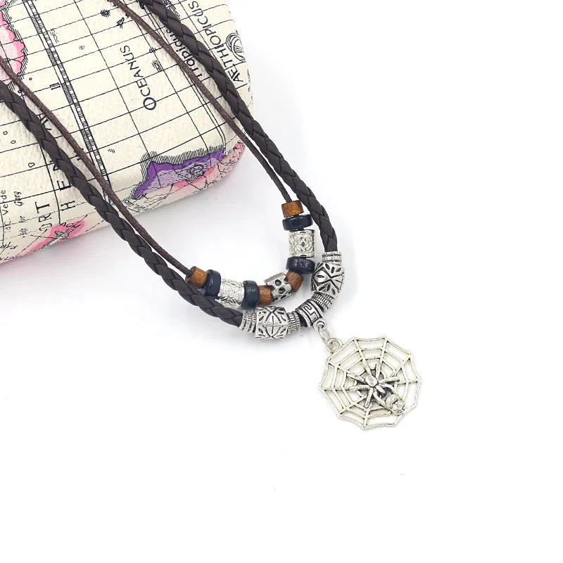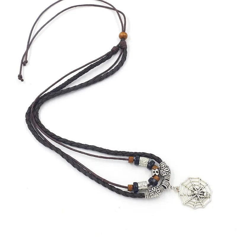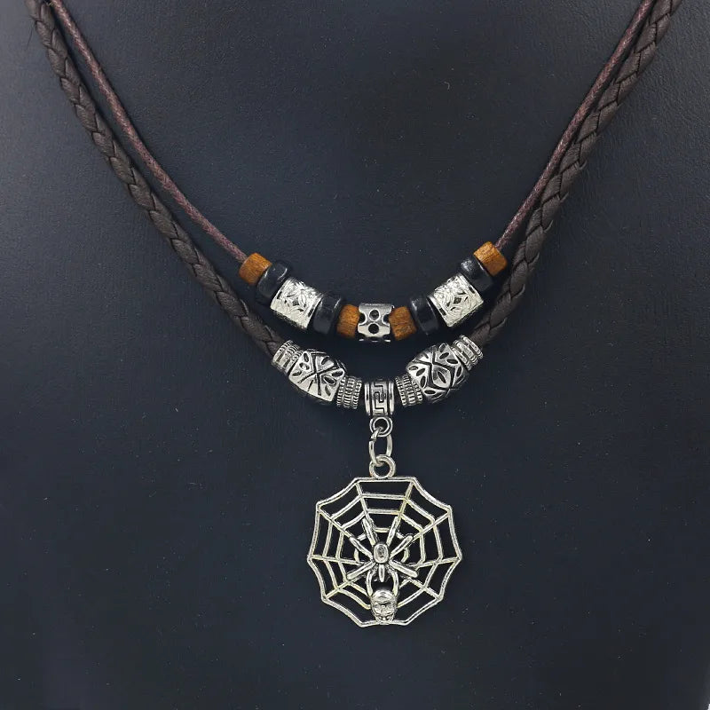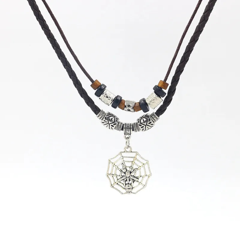 Retro Spider Web Alloy Beaded Plating Hollow Out Halloween Men'S Layered Necklaces - Black rope
