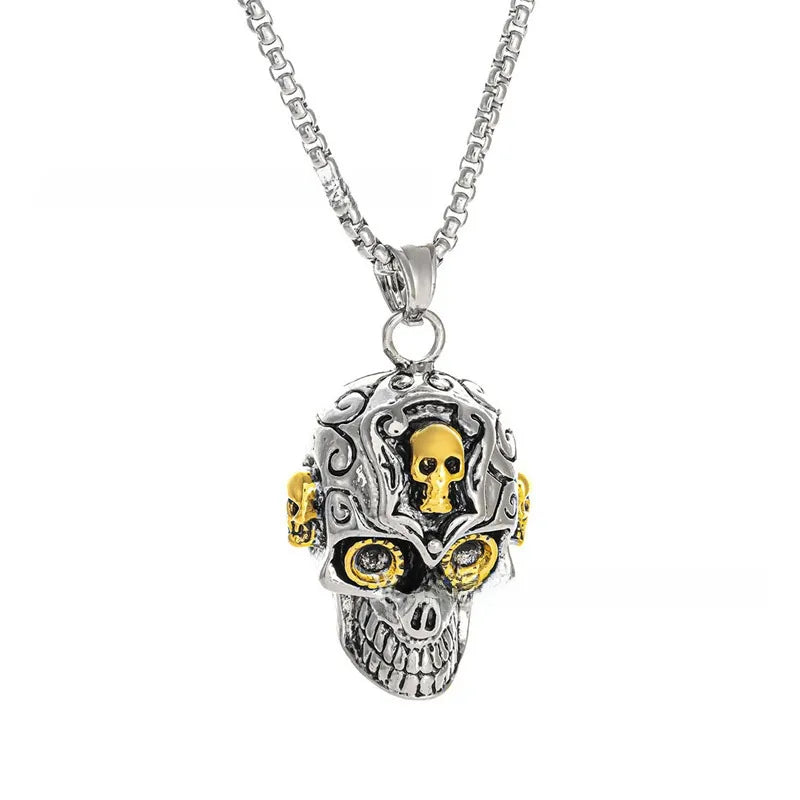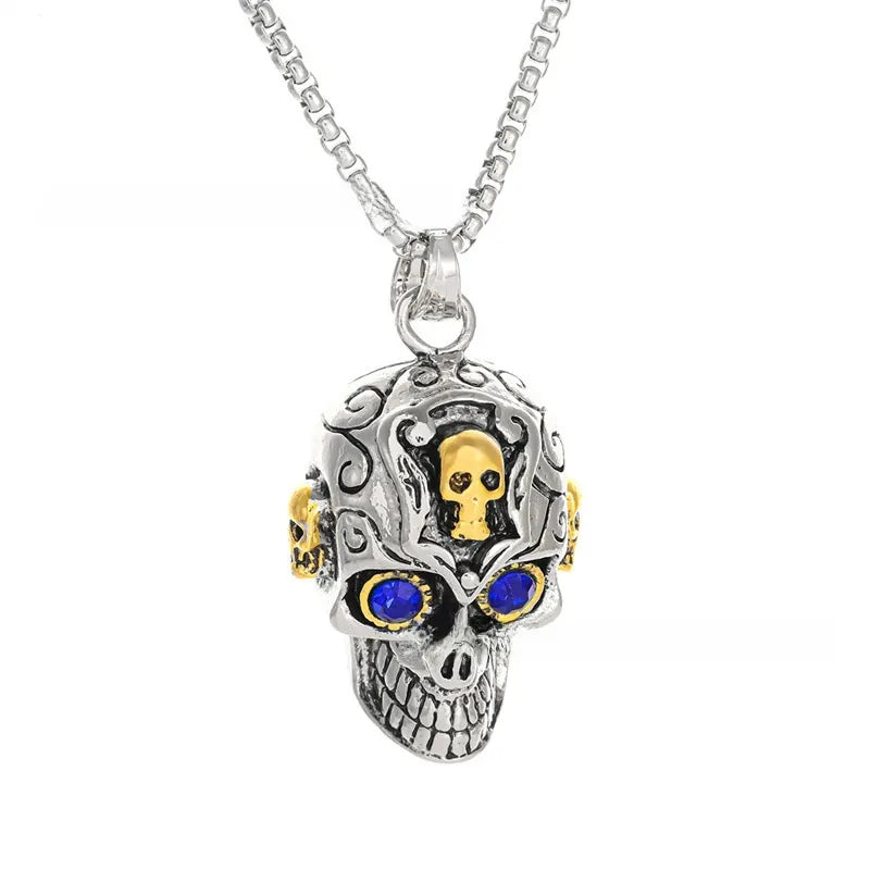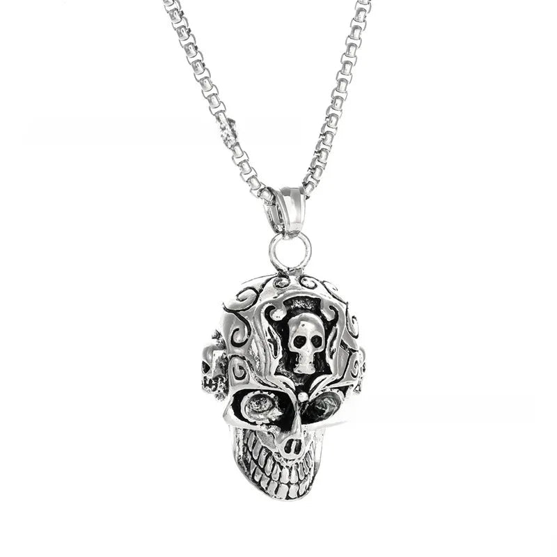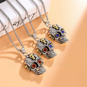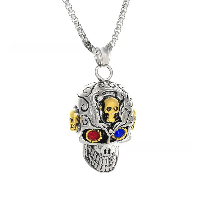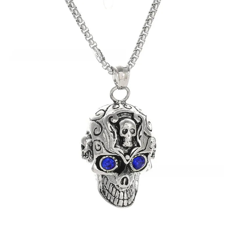Trendy Halloween Titanium Steel Skull Head Necklace Vintage Men's Hip Hop Alloy Pendant Unisex Personalized Jewelry - Ancient Silver-Red Eye
