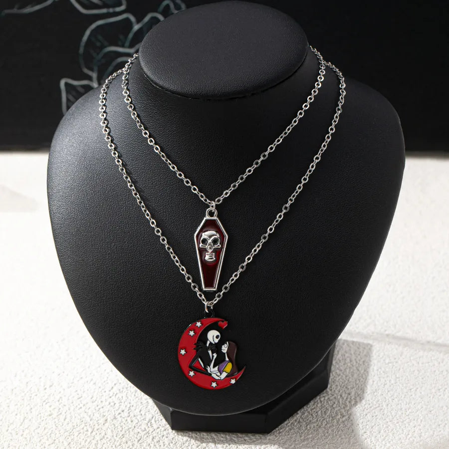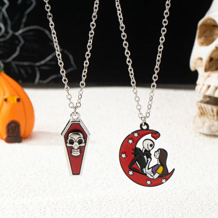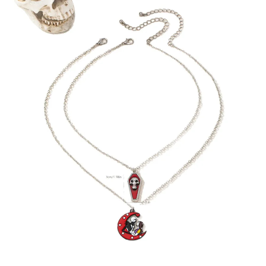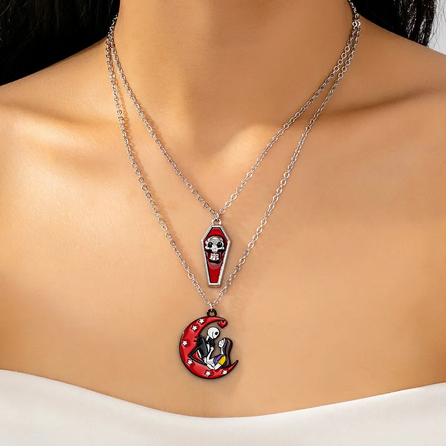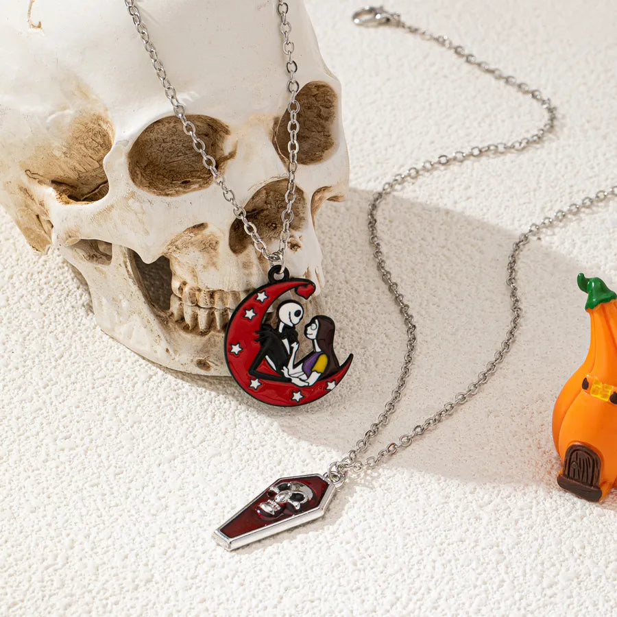 Trendy Skull Moon Pendant Necklace Women's Party Wear Unique Drop Oil Design Suitable For Halloween Suitable For Ladies - YLC-TZ-2260 Color Necklace