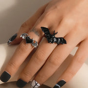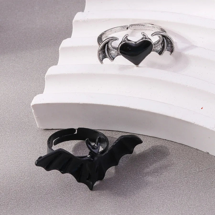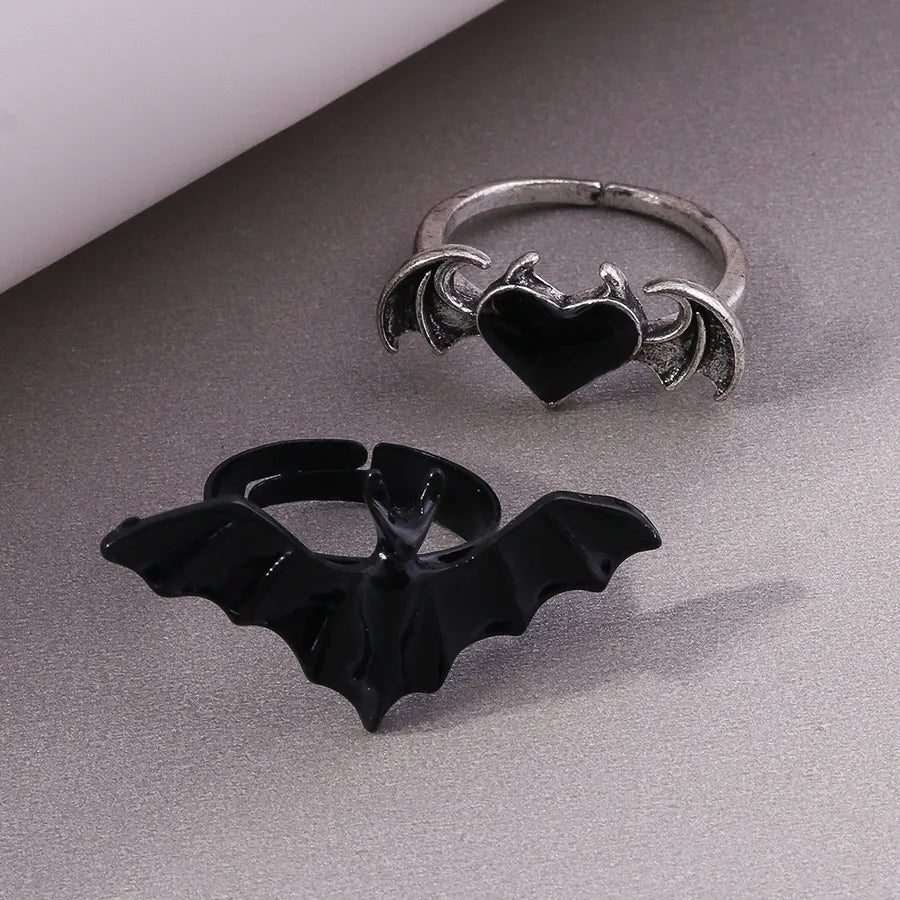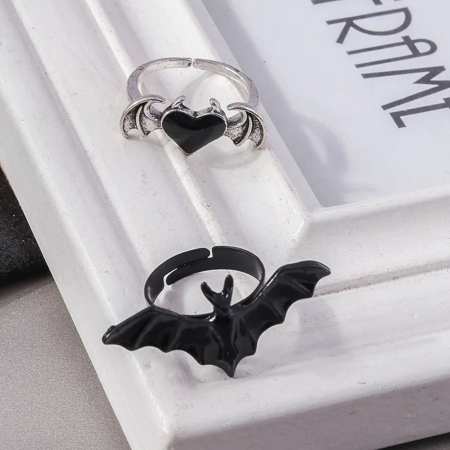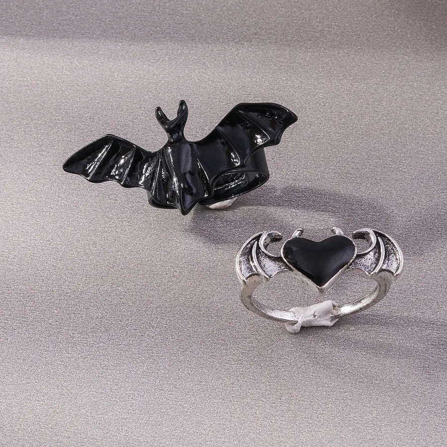 Dark Style Halloween Bat Heart Ring Set Personality Unique Finger Ring Hand Accessory Zinc Alloy Unisex Electric Plating - YRS060
